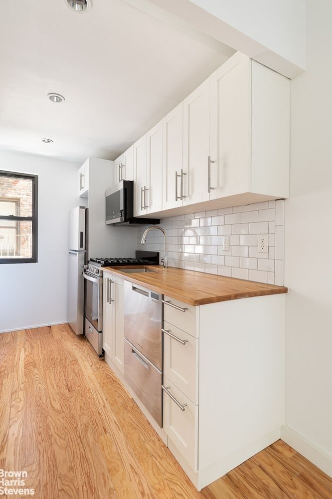 The Filipacchi Foussard Team is pleased to present this charming studio apartment that has just wrapped up a complete makeover. THE BUILDING – Perfectly situated in prime Chelsea near the border of the West Village – From the sidewalk, follow what was a 19th century horse path to a tranquil, manicured country garden that is shared by residents – The apartment is just one flight up, overlooking the garden just below, in 113 1/2 West 15th street, the rear federal-style townhouse of this two building co-op THE APARTMENT – Tons of light from the south, garden facing windows and a north facing window in the kitchen – All new double paned windows – Pin drop quiet – New flooring throughout – Updated electric with recessed lighting – Stunning new kitchen with Italian matte finished cabinets, wood countertops and stainless steel appliances including a double Fisher Paykel dishwasher set – Sleek bathroom with white subway tile and spacious stall shower – Decorative fireplace LOCATION – Absolutely prime downtown area – Access to major subways lines A,C,E,1,2,3,Q,W,R,N and 4,5,6 trains which are found up and down West 14th Street, just one block south – Multiple food shopping options including the Whole Foods and Farmer’s Market at Union Square and the specialty stalls at Chelsea Market – The hippest downtown restaurants, local shops, the Highline Park and Whitney Museum are just moments away This is a 16 unit pre-war co-op with VERY EASY SUBLETTING POLICY making this an investor friendly building. There is an assessment of $54.11 per month in place through January 2023. Some photos are vitually staged.