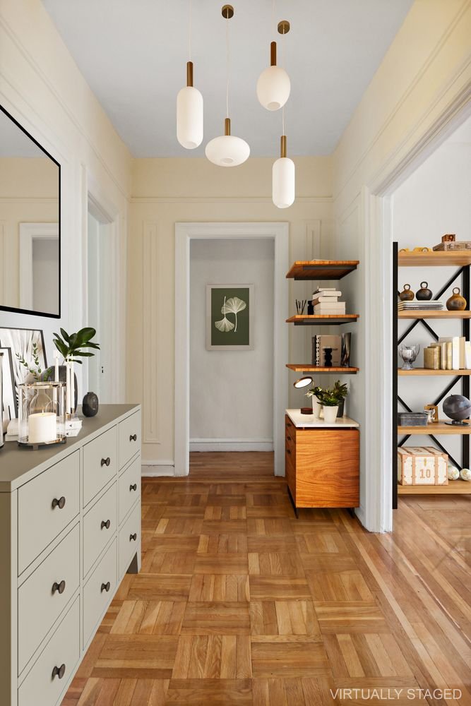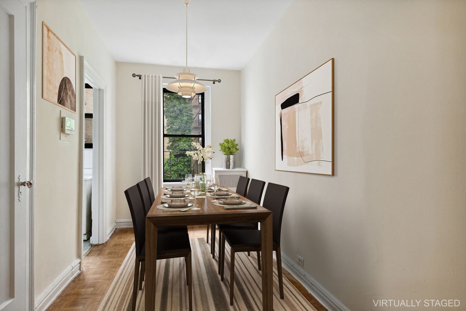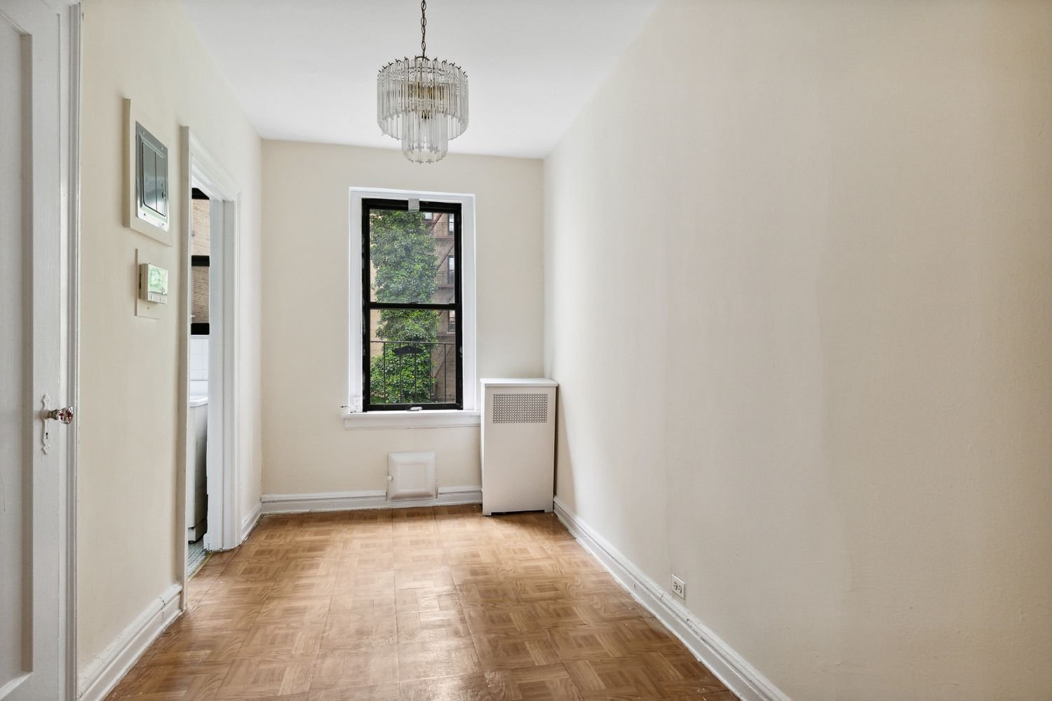 Glorious river breezes flow freely though this home from west to east with tranquil leafy views from every window and even a seasonal peak of the Hudson River and GWB. Beautifully proportioned, this huge prewar one bedroom with separate dining room is as large as many two bedrooms in the neighborhood. So much space to work with, simply bring your vision and contractor to transform this diamond in the rough into a thing of beauty! The inviting entry foyer leads you to an expansive living room flooded with afternoon light and picturesque sunset views; opposite is the dining room and kitchen each facing pretty evergreen gardens and bathed in morning light. The king-sized bedroom is nicely removed from the living space, separated by a hallway with 2 large closets. To have this kind of space AND enjoy the perks of top-floor living is a special opportunity indeed.