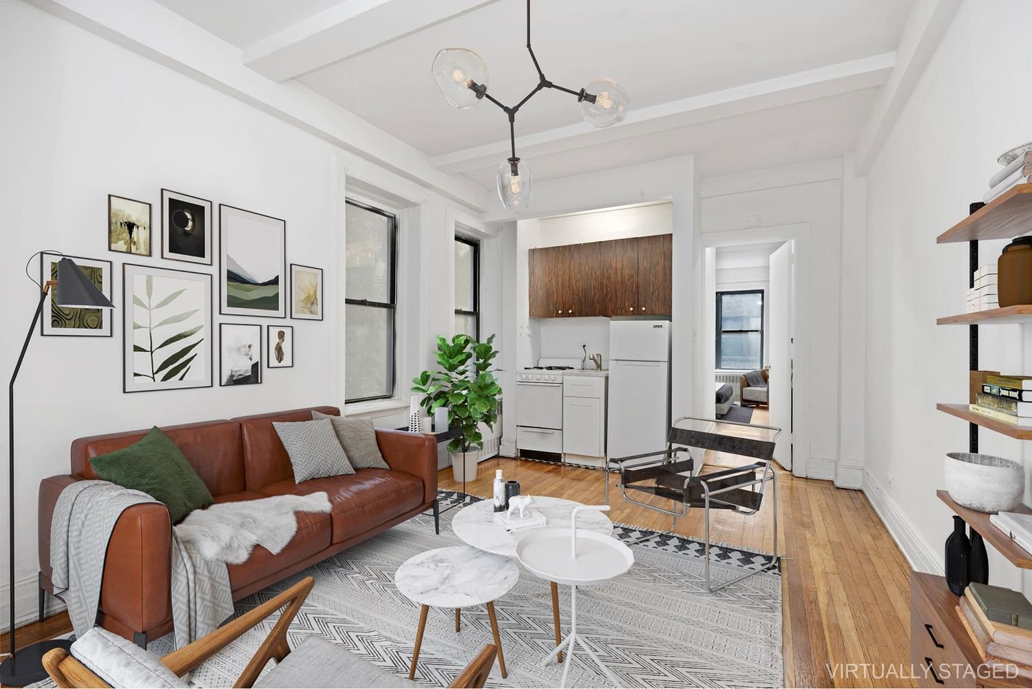 Price drop! Owner says sell! Don’t miss this spacious and sunny true one-bedroom home, filled with south-facing light in the very best Upper West Side location. Beginning with beautifully refinished hardwood floors, there is an open kitchen, ample closet space, a windowed bathroom with elegant ceramic tiling and a new vanity, extra-tall beamed ceilings, prewar detail and much more. 116 West 72nd Street features dual refurbished elevators and a freshly painted lobby, a live-in super, basement laundry and bike storage. Unfortunately, dogs are not permitted. Please call today to view.