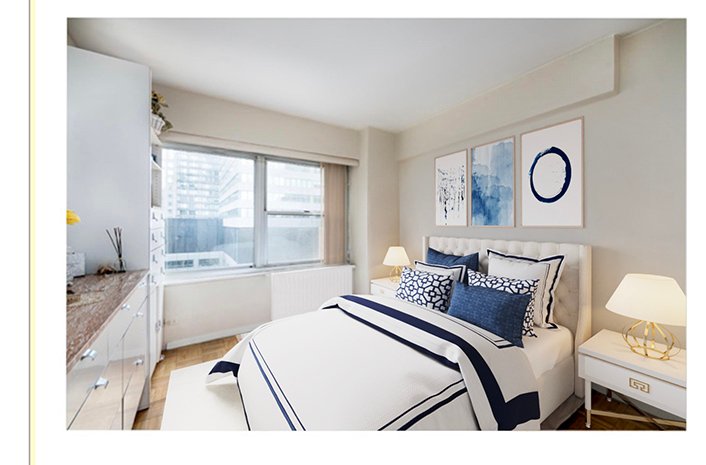 Beautiful one-bedroom apartment in a prime full-service building in an amazing location next to everything! Central Park, Bloomingdale’s, Fifth Avenue, 57th Street shopping, and all major banks and corporations. Short distance to the United Nations or very easy and convenient for all types of transportation right outside your door! The Plaza Tower at 118 East 60th Street was built in 1964 and is a white glove co-op situated between Park and Lexington Avenues. The building has a covered circular driveway with a beautiful fountain in a lovely front garden. Door attendants are on duty 24/7 and the Resident Manager and Concierge are available from 8 AM to midnight. The roof deck has sweeping views of Midtown East all the way to Central Park and beyond. There is an adjacent garage, central laundry, package room, and many staff members to attend to any and all of your needs. The maintenance includes heat, hot water, and gas for cooking, central air conditioning.