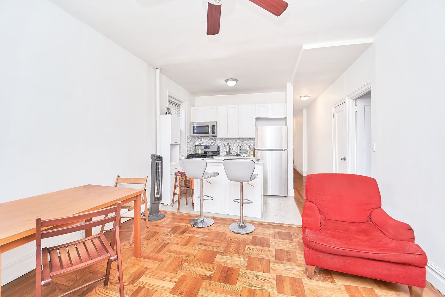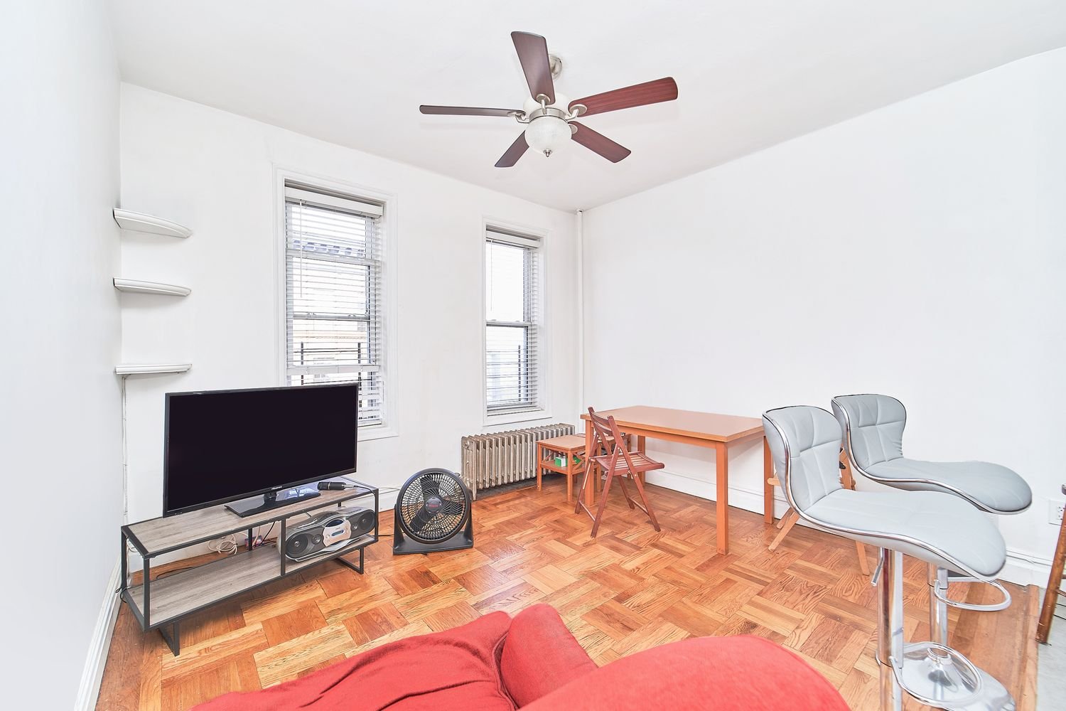 This spacious two-bedroom cooperative apartment in an elevator six-story pre-war building is located in central Harlem on a quiet tree-lined street. This Sun-filled 5th floor 2 bedroom has an updated open kitchen layout and boasts hardwood floors, high ceilings, crown moldings, and ample closet and storage space. The sunny living room is next to the second bedroom, which may serve as an office, family room, or as a dining room. This roomy cooperative unit with very reasonable maintenance fees