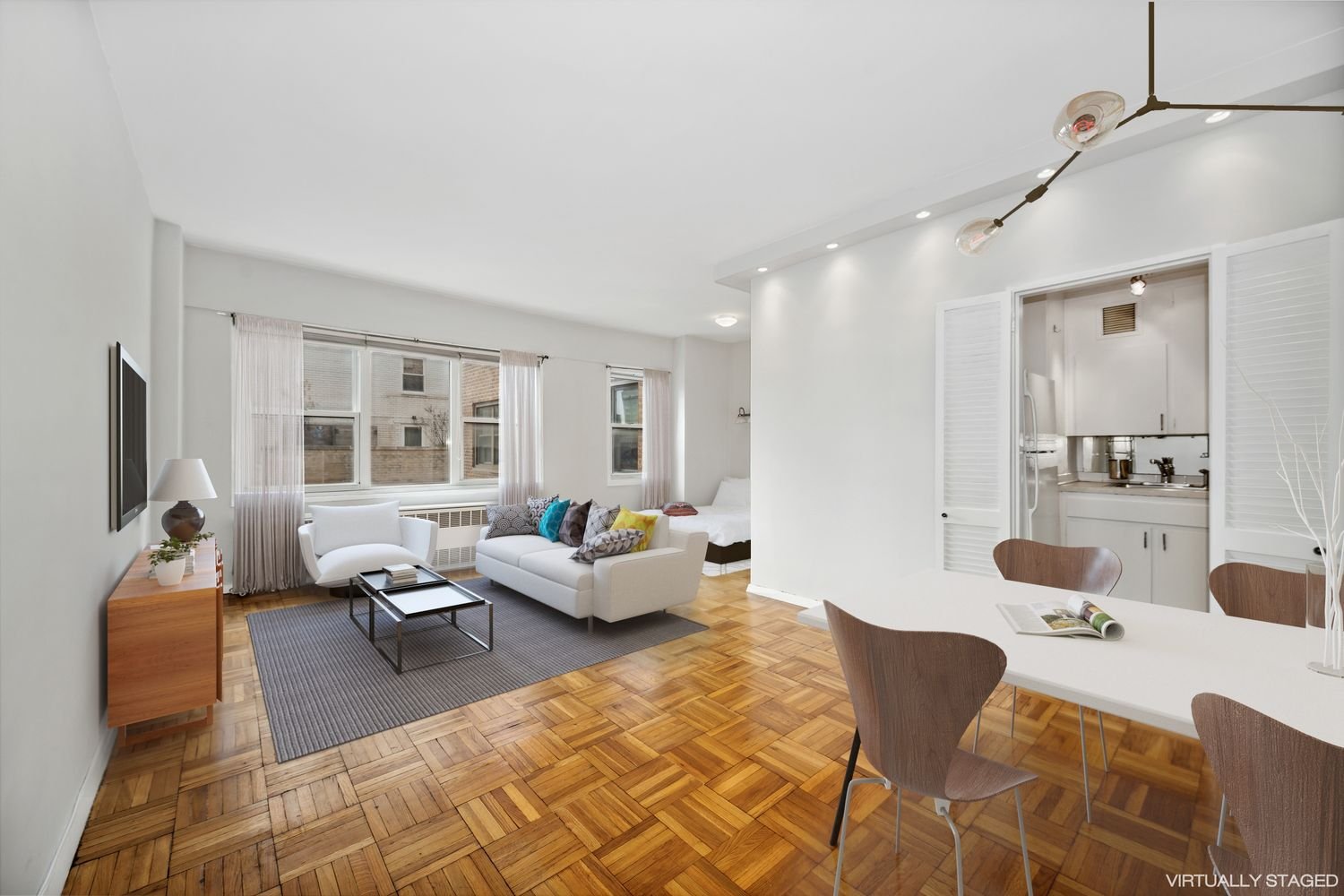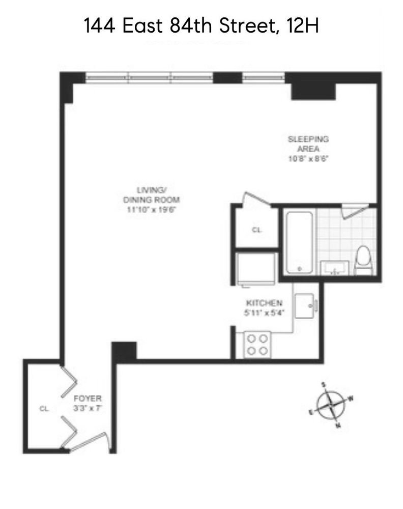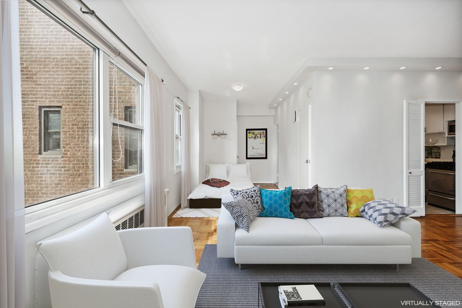 Wonderful sun-flooded alcove studio located at 144 East 84th Street, a charming full-service co-op in the heart of the Upper East Side in Carnegie Hill.