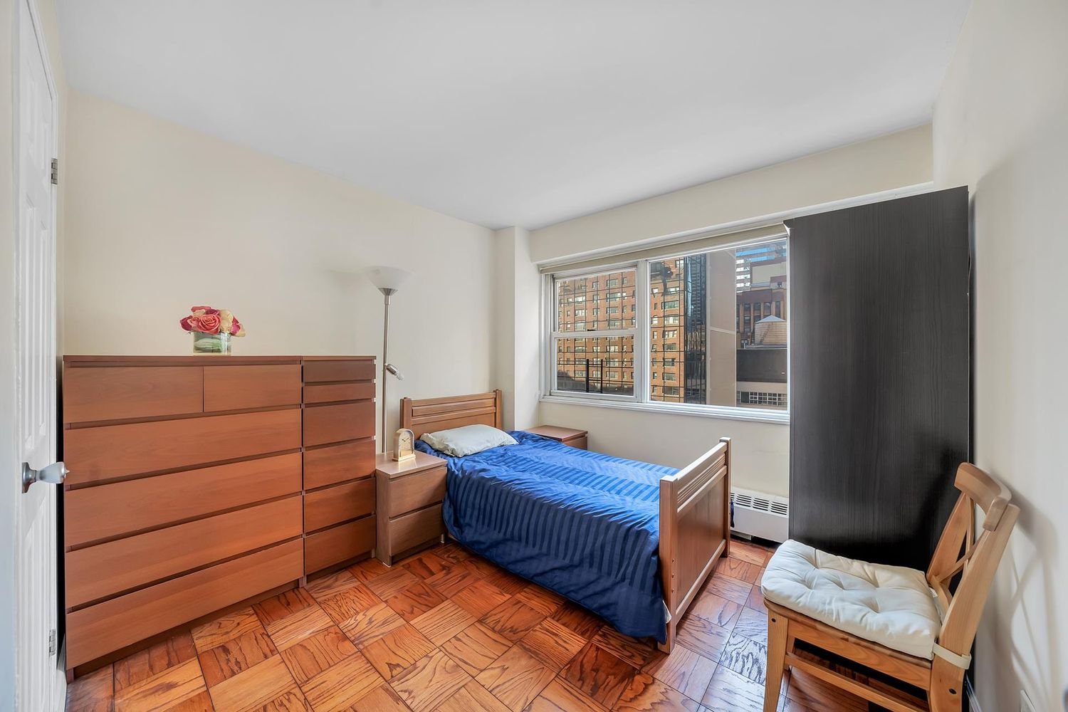 Rarely available, large, sunny, and southern facing converted junior one bedroom in full service doorman building. Building has bike storage, garage, and laundry. Apartment has already been converted into a junior one bedroom. Several subway lines (4,5,6,F,Q,E,& M) are within a few blocks away and the crosstown bus stop is on the corner. Reasonable sublet policy. Low maintenance includes Gas and Electric. Low cost cable and internet are available to all residents ($56/mo). Restaurants, shopping, Whole Foods, Trader Joes, and transportation are steps from your front door. Full time doormen, helpful staff and live-in super. The building allows 75% financing and there is a 3% flip tax. Sorry, no dogs; Cats only.