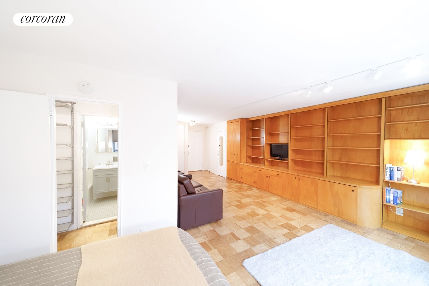 New price! Completed renovated kitchen, updated bathroom and custom cabinetry makes this bright jumbo alcove studio well worth seeing. All in an exceptionally well run coop near Lincoln Center, shopping, and nightlife – yet is secluded from the congestion of the city. The entrance, tucked away on a private driveway, creates a refuge from the noise and bustle of the city while being just two blocks from the local and express trains. New windows, central air conditioning/heat, a renovated lobby, and a recently refurbished laundry room all add to the quality of life this apartment offers. Its reasonable maintenance includes gas and electric utilities. Pets are generally OK (with exceptions). The buildings amenities include: full-time 24 hour doormen, live-in superintendent, concierge services, gym, bike and playrooms, package, private storage, and access to RCN, Spectrum and Verizon. Private security personnel and managing agents are onsite. Subletting is permitted subject to Board approval. Lincoln Towers is an oasis of 20 acres in the midst of the vibrant Upper West Side, steps from Lincoln Center. It features private shared playgrounds, basketball court, mature plantings, lovely gardens, and benches throughout the property. Pied a terres are allowed with board approval. Maintenance includes gas and electric. Life couldn’t be easier!