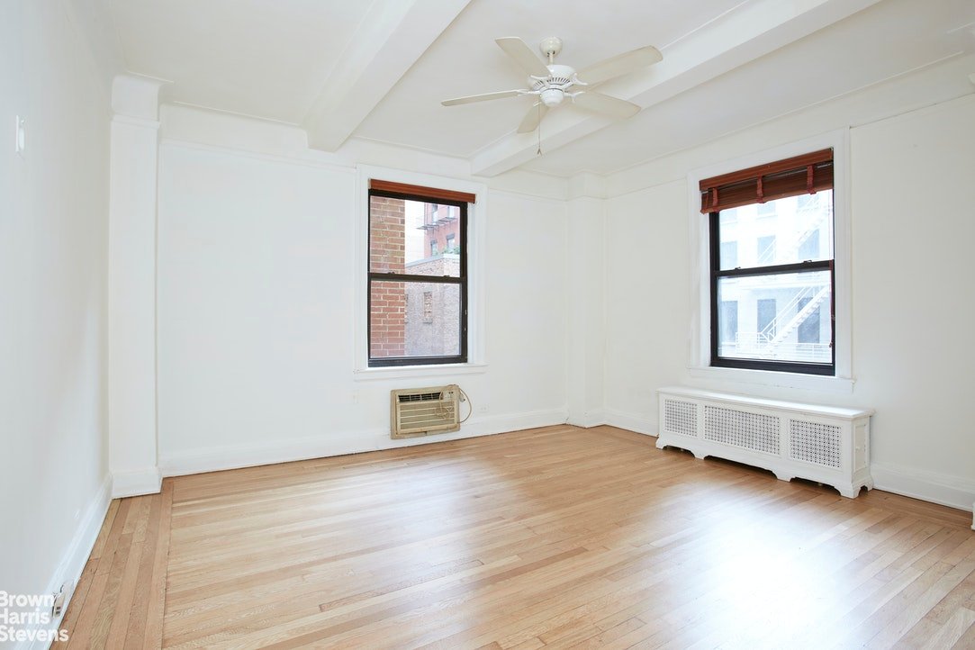 First year of Maintenance is FREE! Now you can take the to design and decorate your perfect one-bedroom home, without the pressure of monthly carrying costs for the first 12 months of ownership ! This Prewar Cooperative, located in the heart of the Upper East Side – is featuring a large one bedroom/one bathroom corner apartment. It has a lovely entry foyer, ceilings exceeding nine feet, hardwood floors throughout and excellent storage space. This home is the perfect project for anyone who wants to custom design their next home. The windowed kitchen easily accommodates a table and chairs and awaits a customization for their ideal kitchen. The living room features beamed ceilings, a dining area and two oversized windows facing West. The Primary Bedroom offers two exposures; North and West. For storage, there are two closets, just outside the bedroom. The windowed master bath is perfectly located just outside of the bedroom, where it can also function as a guest bath. This Prewar co-operative is superbly staffed and it’s surrounded by restaurants, shops, museums and convenient transportation via the Lexington and Second Avenue Subways, as well as the 79th street cross town bus. There is a full-time doorman, laundry room, bicycle room, a private garden and a live-in Resident Manager. Pied-a-Terre use and and parents buying for children is allowed on a case-by-case basis. The building allows one pet up to 40 pounds. The Cooperative Board allows up to 75% financing and there is a 2% flip tax.