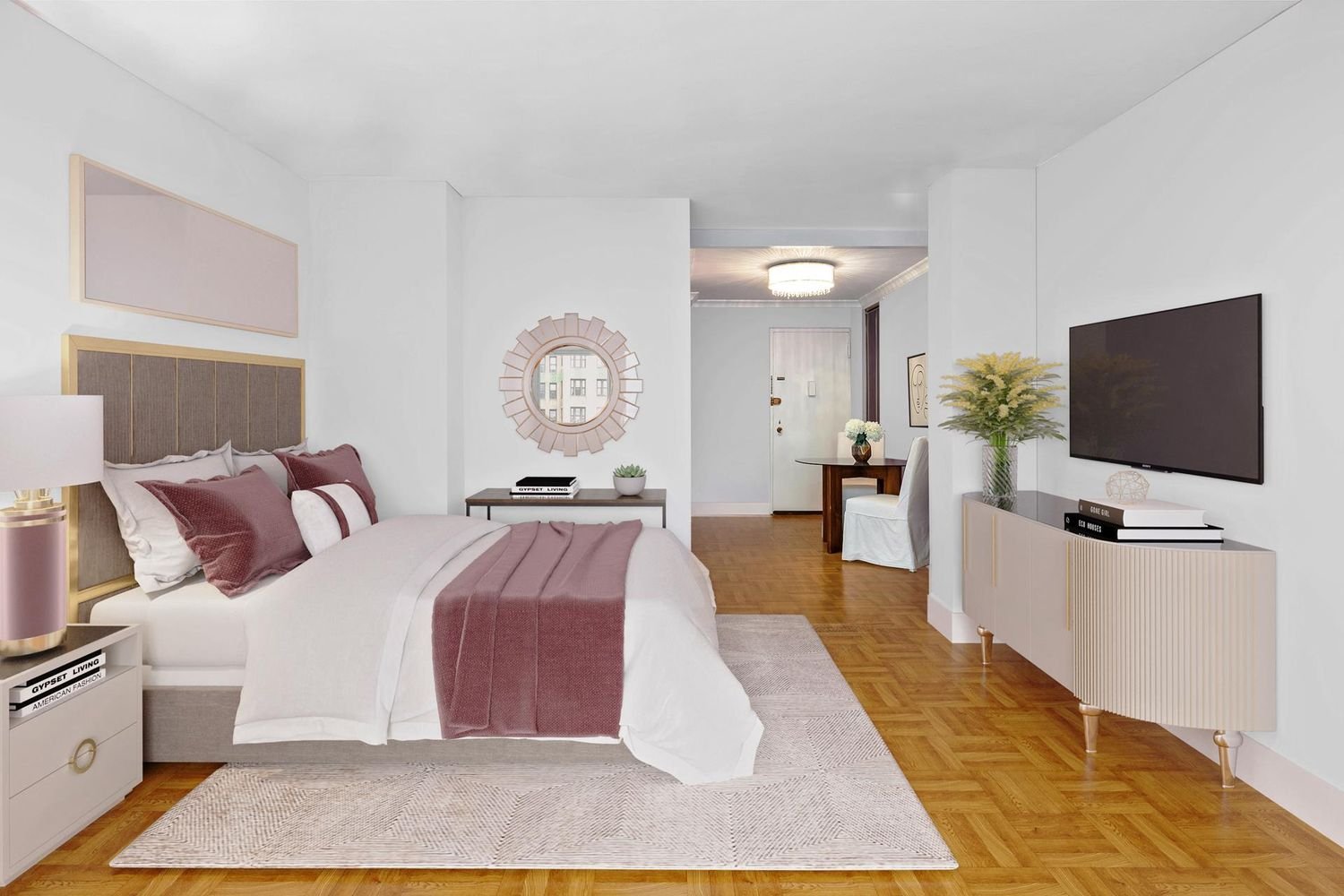 Beautiful natural Northern light from a wall of windows greets you as soon as you enter this spacious studio with LOW maintenance (under $1000) in this coveted co-op on the Upper East Side The renovated kitchen has stainless appliances, white cabinetry, black granite counter tops, Italian glass back splash and tile floors. This over-sized studio has a dining area in the foyer with crown molding, base molding throughout and generous space for a bedroom and a true living area. To complete this special apartment, the HVAC features custom covers with added storage space. There are two large closets in the foyer in addition to floor to ceiling built-ins outside the marble bathroom. 201 East 66th Street is a NO SMOKING self managed co-op with LOW maintenance. There is a 24 hour doorman, package person, central laundry room, a Crunch gym located in the commercial space of the building, a self managed garage (waiting list) and storage cages (waiting list). One dog per apartment under 60lbs permitted with Board approval. No sublets. No guarantors no co-purchasing. Pieds-a-terre are case by case. 201 East 66th St is conveniently located on the NE corner of 3rd Ave and 66th Street; close to fabulous restaurants, shopping and mass transportation – Q/F/6 lines and M66 crosstown bus.