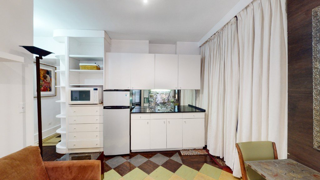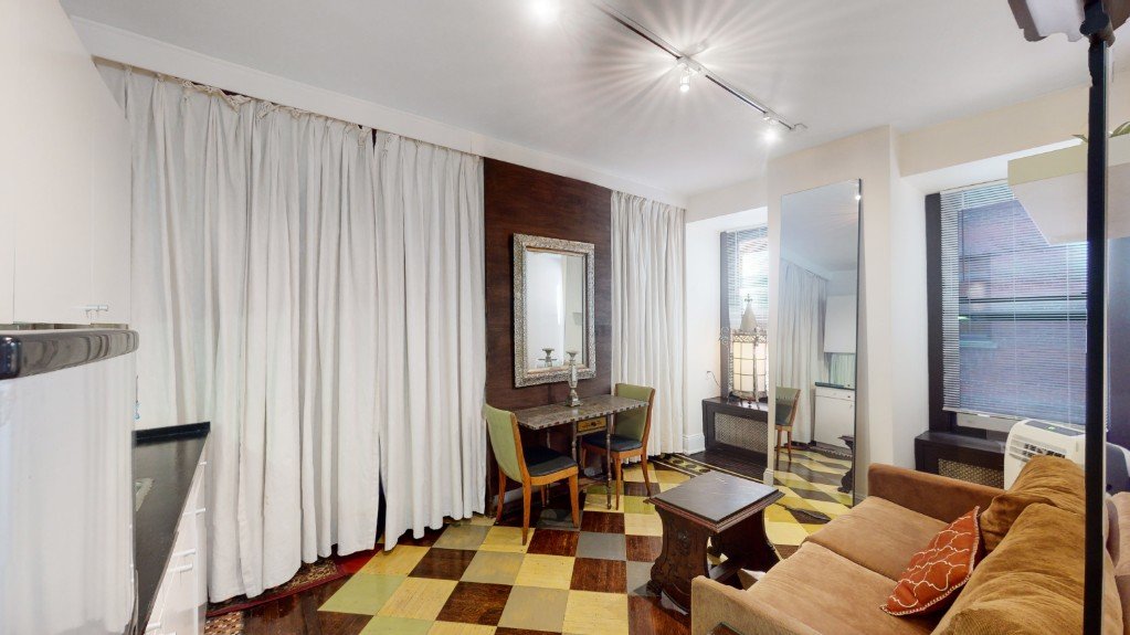 Location, Location, Location By Central Park on Billionaires Row, in the historic 19th-century Osborne building, across the street from Carnegie Hall a truly unique one bedroom duplex Pied-a-Terre with sumptuous closet and storage space, featuring charming details one doesnt ordinarily encounter, including the original parquet floors, plaster moldings, and a foyer entryway lined in built-in, 20 wide by 12 high wall-to-wall shelving for books, collectibles, handbags or shoes complete with a library ladder. The shelving continues up the stairs and through a hallway which leads to the living area, which offers a unique closet for ample storage space. The best feature of this apartment is the tremendous amount of storage which includes a 15-foot-long, 2 tier Dry Cleaners ELECTRIC conveyor clothing rack with a 300-500 garment capacity. The living room space has modern track lighting, the kitchen has good storage & cabinet space as well, and the bath has a full-sized tub. The Osborne is a New York landmark and has been home to generations of celebrities with its exquisite workmanship and famous awe-inspiring lobby complete with ornate details. Just 2 short blocks to Central Park & Columbus Circle, with a supermarket a half-block away. Across the street from Carnegie Hall, 10 blocks from Times Square & Broadway, and conveniently located near all major subway lines. Live in the heart of New York City. Full-service building amenities include a newly finished gym and a private rooftop garden. There is a 3% flip tax paid by the buyer and up to 50% financing is allowed.