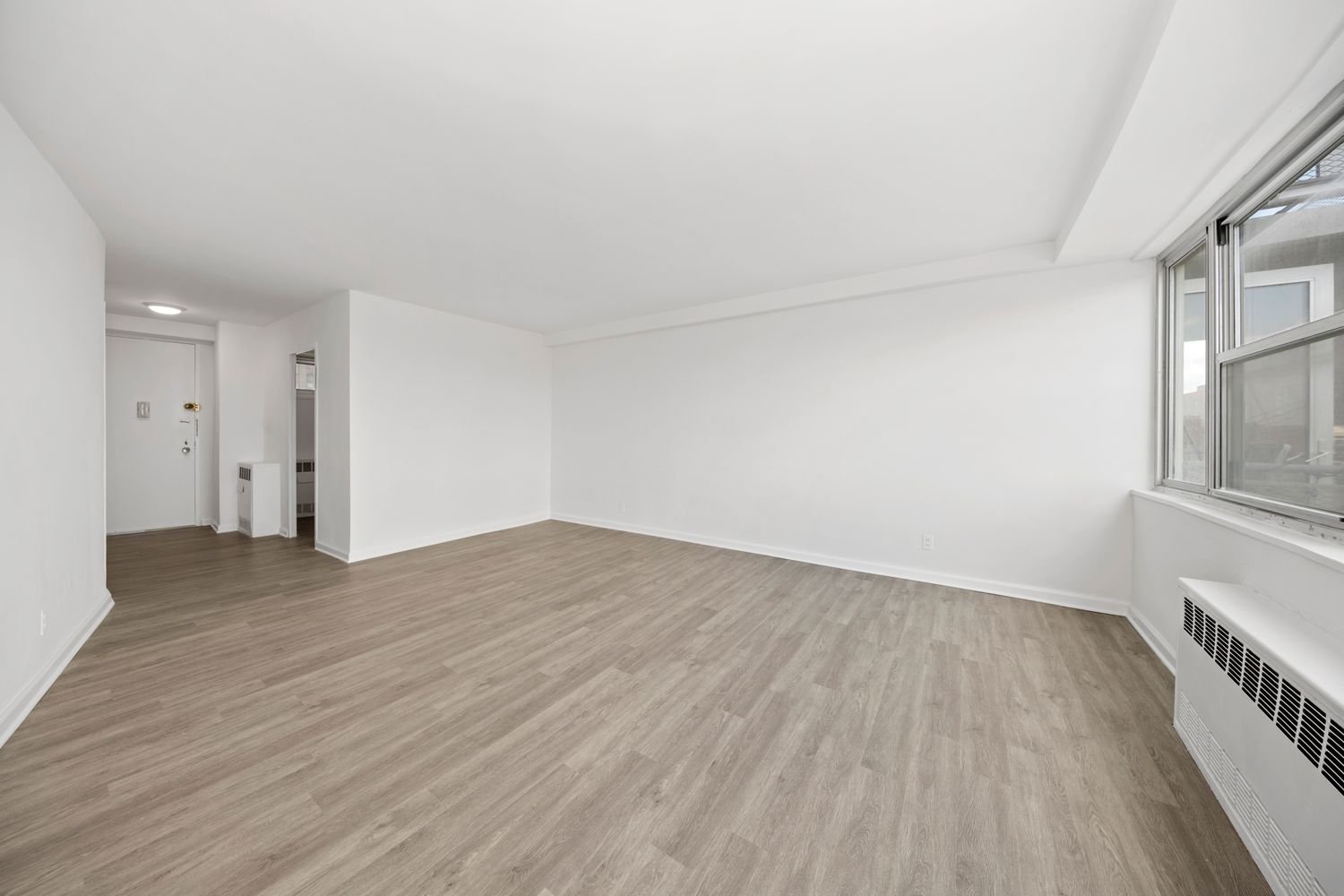 High on the 15th floor, this spacious renovated studio home enjoys abundant light, sweeping views overlooking open south-eastern cityscapes with plenty of sky from the oversized windows. This is an opportunity to own a large, restored studio with new floors and several upgrades to the kitchen and bathroom. This apartment offers a nice sized separate windowed kitchen, great storage space, and an open layout that is large enough for any sized bed, plus living and dining.