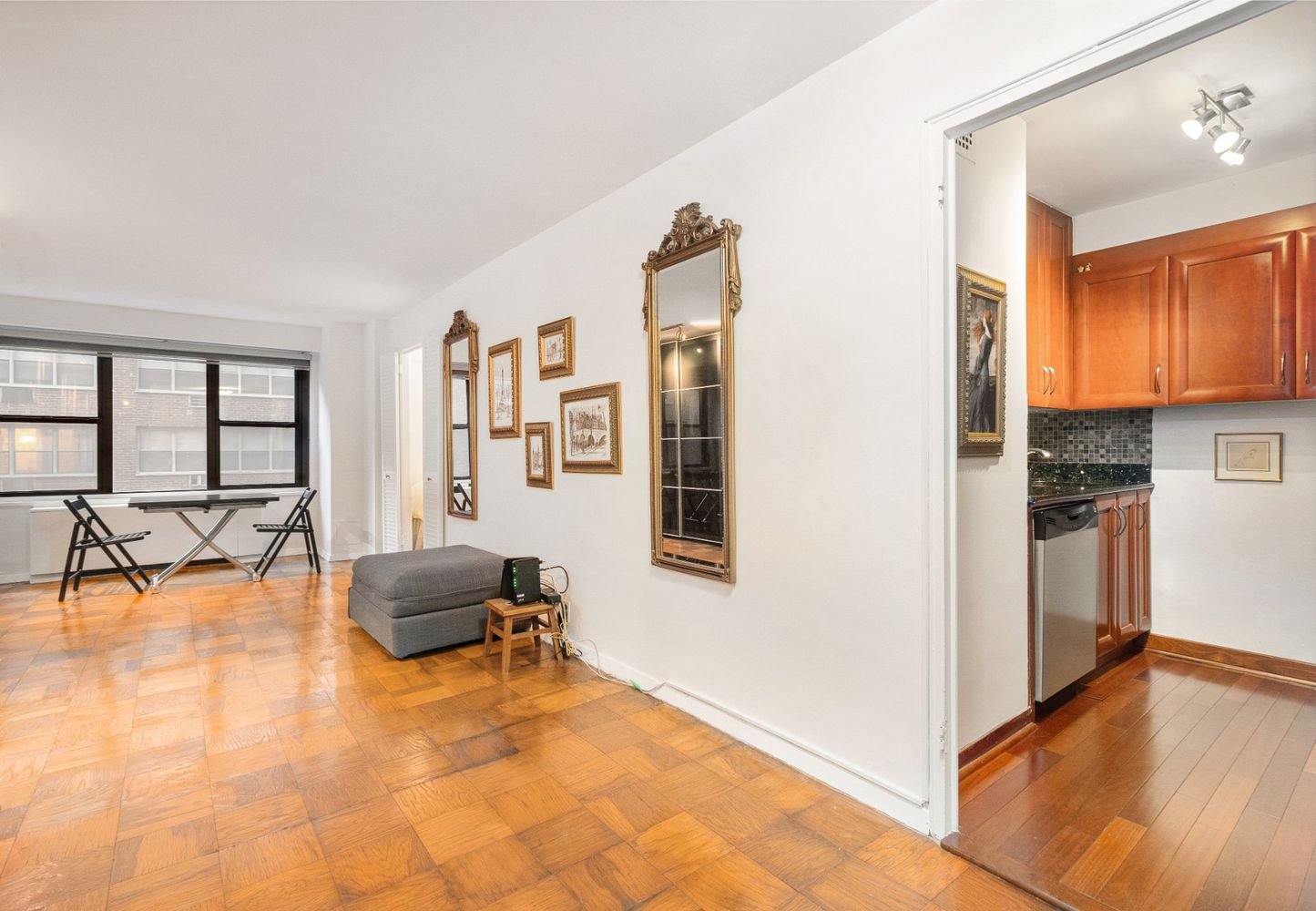 Flexible Co-op rules with Unlimited subletting after 1 year! This beautiful alcove studio offers very good light from three Southern exposure windows and is pin-drop quiet. It features a 20 long living room that allows separate areas for dining and a comfortable size space for entertainment. The entry foyer with a spacious closet is next to the kitchen which was renovated with beautiful cherry oak wood cabinets, stainless steel appliances, and warm hardwood flooring throughout. The windowed sleeping alcove area is serene and welcoming and fits a queen/full-sized bed and nightstands. It offers two generous-sized closets by the ensuite bathroom. A new vanity and glass shower doors updated the bathroom. Carlton East is a well-established mid-rise Coop building located on 57th Street mid-block between 3rd and 2nd Avenues. It was built in 1962 and includes 152 apartments. Amenities; full-time doorman, live-in super, central laundry room, two elevators, bike room storage, and storage cages for an extra fee. The location is convenient to the 4/5/6 and E/M subway lines and buses, next door to Whole Foods supermarket, a few blocks away from Central Park and surrounded by charming restaurants and shopping.