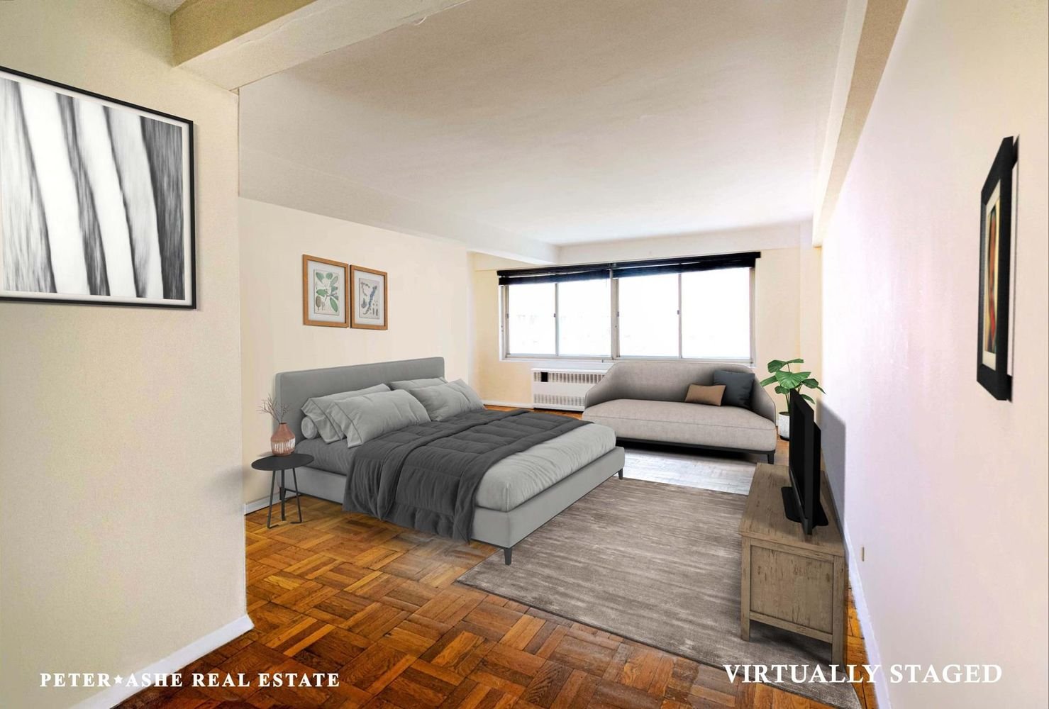 Your quiet oasis is waiting in turtle bay, featuring an additional set of windows that creates an effective buffer to outside noise. The B line is the largest studio line in the doorman building ‘Executive House’ and well laid out with plenty of storage. Executive house is in PRIME LOCATION! Great for people who need to be in midtown! Executive House is a full service Condo building that is the perfect place to call home. The north facing exposure and large windows allow for plenty of sunlight. Large living and dining area which is perfect for entertaining. The large closets allow for amble storage. The building is close to Grand Central and transportation including the 4,5,6,7 and shuttle to the West Side. The building boasts a great roof deck and is pet friendly Small pets and subletting allowed.