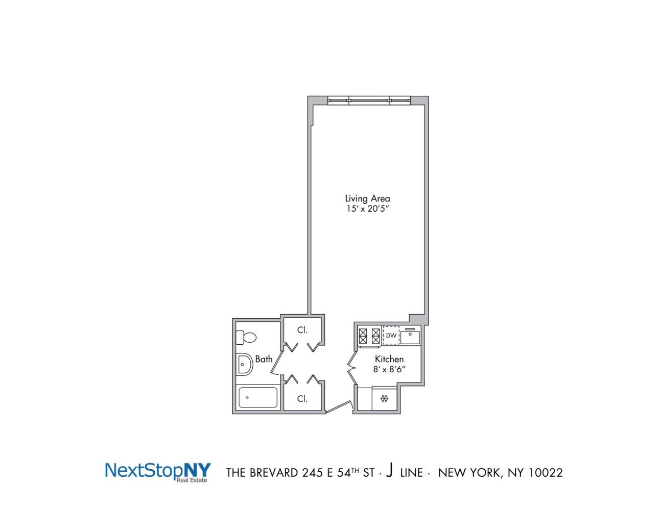 Wonderful studio for rent. This recently renovated home has new floors and an updated bathroom. Plenty of space for a bed, desk and living room area. Enjoy a full kitchen with a dishwasher and good counter space. The East facing exposure offers great views and plenty of sunlight. The Brevard is an impeccably run, full-service co-op that boasts a 24-hour doorman/concierge, top-of-the-line roof deck, and modern laundry room on the second floor. The lobby, hallways and elevators have all been renovated. Equinox is directly across the street, as well as Blink and Soul Cycle. Call today for a private showing. For more information on our listings please visit THEBREVARD All information furnished herein is from sources deemed reliable. All information is submitted subject to errors, omissions, change of price, prior sale or lease, or withdrawal without notice. All dimensions are approximate. For exact dimensions, please hire your own architect or engineer.
