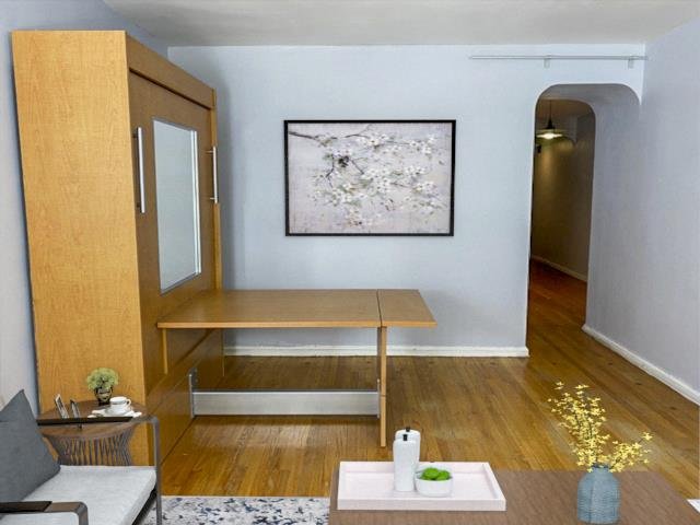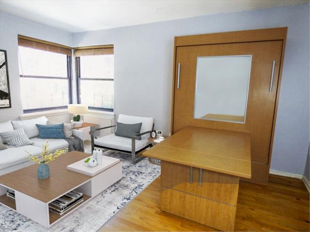 This may very well be the best deal on a large studio, in all of Manhattan. If you’re looking for a quiet sanctuary surrounded by tranquility, you’ve come to the the right place. Step outside into Inwood Park and Marsh sanctuary, where you’ll find well-designed private spaces to further soothe your soul. There are numerous hiking trails and rolling green manicured lawns set in a sprawling, mature forest. This elevated 1st floor apt has a unique, flowing floor plan making the large studio space feel like a 1BR. There are bonus spaces in the floor plan that can be used as dedicated office space or for dining. The first three photos are stage, while the remaining photos give the viewer a sense of just how versatile this flexible floor plan really is. Good vibes continue with large windows providing very good light, and open street views. Windows continue in the kitchen and bath revealing landscaped hedges and green privacy views. Sunlight bathes the apt via its north and western exposures much of the day. The updated eat-in kitchen features warm wood cabinetry with abundant storage space, white appliances, a stainless steel countertop, and a modern glass built-in breakfast bar. There are three large walk-in closets and a 4th clothes/linen closet located in a dressing room area near the bathroom. This studio also offers: a modern Murphy Bed cabinet that easily transforms into a dining room table or large desk; smart modern lighting fixtures; a security system; and is pet-friendly upon Board approval. Surrounded by expansive green parks and the Harlem River Marsh sanctuary, you and your dog will have endless hours of playtime and soothing walks ahead. There are 67 units in the building, within 6 stories, built in 1939. There is a live-in Super and recently updated modern laundry in the building too. Low maintenance. Cable: $55.50. Near several excellent, top-rated cafes, restaurants, and shopping too. Nearby subways include the A and 1 trains, with quick transfers to the B/D/C trains from the A at the 145th Street station. Save steps via the A to transfer to the 1 train at 168th Street for excellent dining and shopping along Broadway at numerous stops along the way. Shown by appointment only. Text listing broker to schedule your private showing today. Confirmation of vaccination and masks are required for all showings.