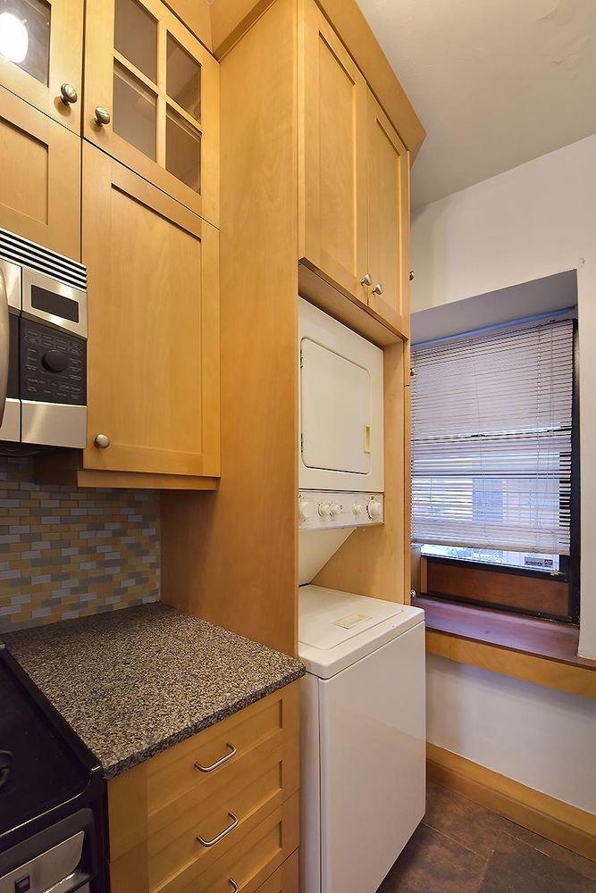 Your Own Private Loft-like 1BR in the City Private street entrance right into you new one bedroom home in the city. Enjoy a tastefully designed eat in kitchen with all modern appliances including a Fischer & Paykel dishwasher, custom wood cabinets and Silestone counters. Monthly maintenance includes cable and internet! Very high ceilings give teh feeling of a loft-like space. No more trips to the laundry room. This apartment has its own space saving stackable washer/dryer! Unbelievable storage space in this home. Two enormous walk-in closets give you plenty of storage space. Building features include laundry, two elevators and live-in superintendent. Storage lockers and bike rack in basement (wait list and separate charges apply). Pet friendly.