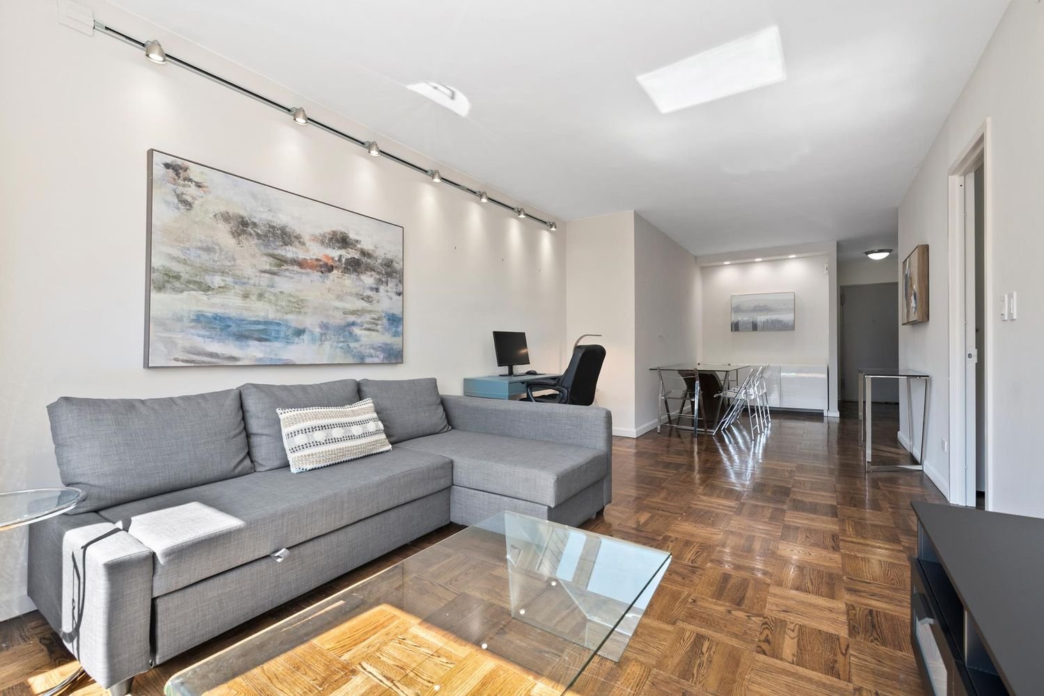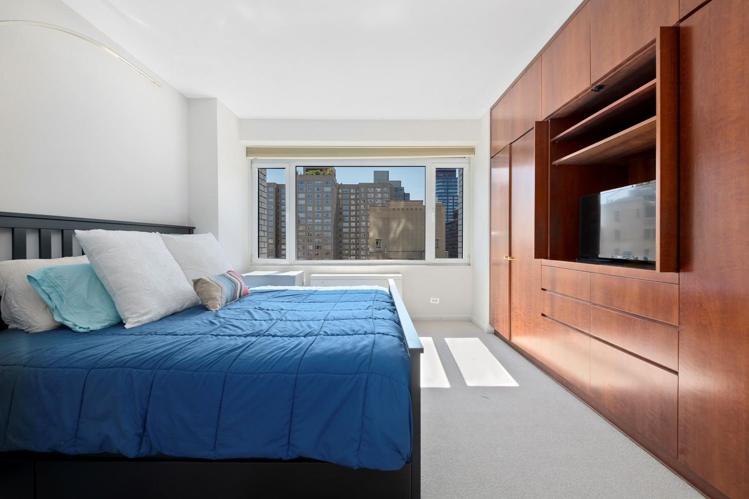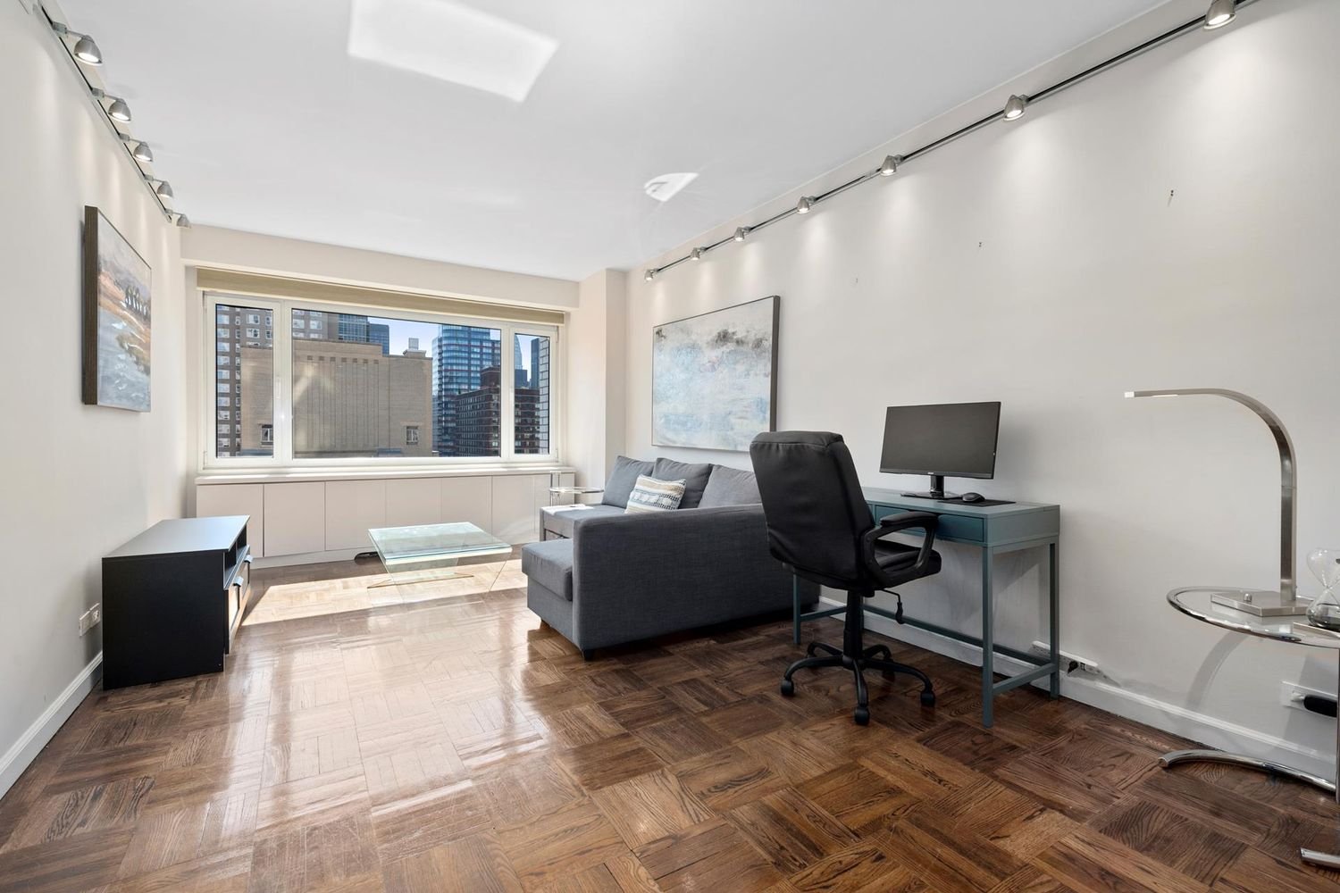 Welcome to The Excelsior! Apartment 21C offers height, light and views! As the Chrysler Building gleams through your south facing windows, a gargantuan walk-in closet welcomes you as you open the front door. This unit is a large one bedroom, one bathroom that features a lovely and comfortable living and dining room space-large enough for an office too! The kitchen offers a washer/dryer combo unit and a dishwasher-making life easy and convenient. Hardwood floors are throughout. The bedroom showcases a walnut built-in unit and space galore. The Excelsior at 303 East 57th Street is close to Whole Foods, transportation and subways – the location has something for everyone. The building’s owners enjoy a circular driveway, twenty-four hour doormen and concierge – with white glove treatment. There is a package room, dry cleaning on the premises, a large gym, saltwater pool, public outdoor space, central A/C in the building, laundry room and a twenty-four hour on-site garage. Pied-e-terre living and pets are permitted. Financing 50% New to market- Asking $370K