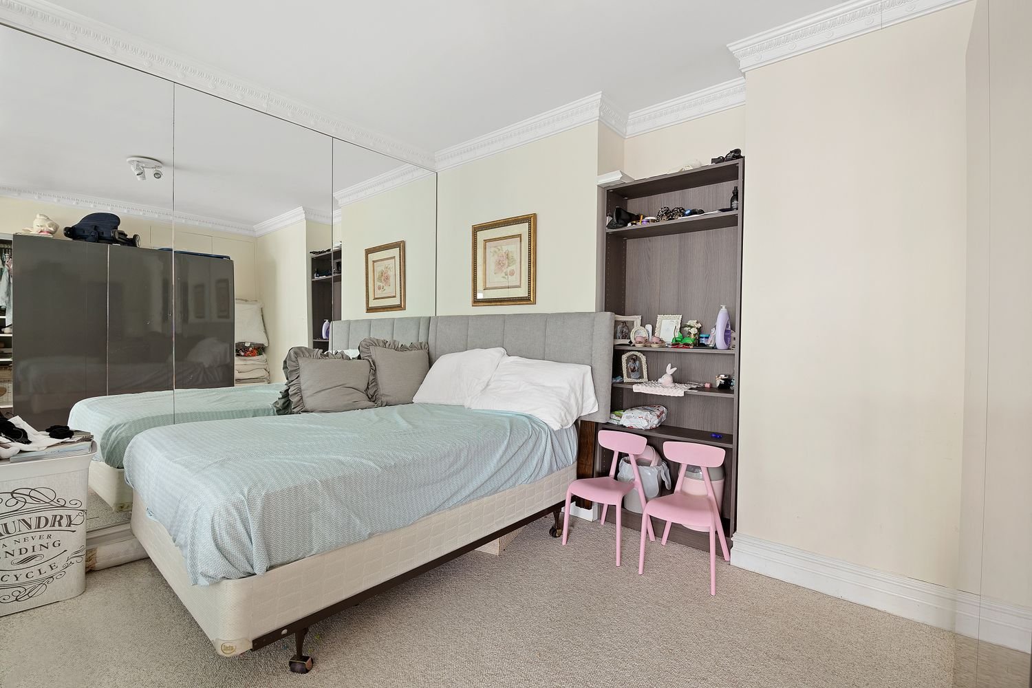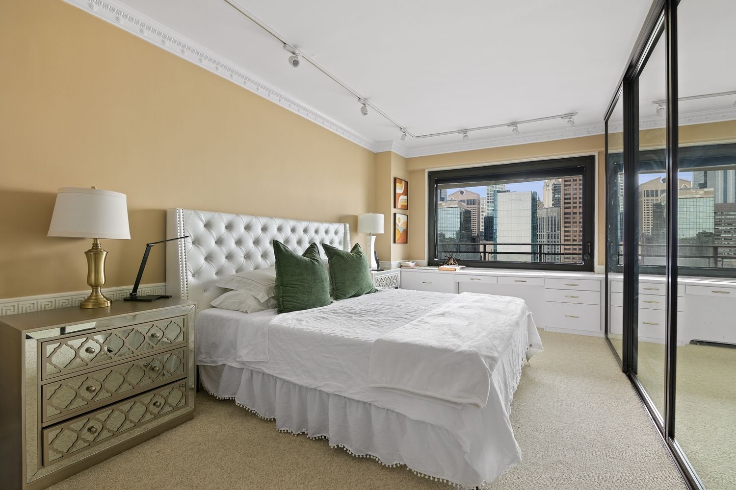 This incredible home boasts an expansive layout with large terrace, a gracious formal foyer with 3 entryway closets + a walk-in closet, oversized windows that flood the space with sunlight and city views, and a grand living room large enough to create a separate dining area. The primary bedroom has an incredible view and features spacious closet space, including a full wall of custom closets, offering plenty of room for a king-size bed plus desk, while the second bedroom can accommodate a full size bed, or can even be used as a home office. The separate chef’s kitchen is located just off the entryway and features stainless steel appliances, premium counters, a built-in wine rack, and ample glass-panel cabinetry. By appointment or virtual tour only.