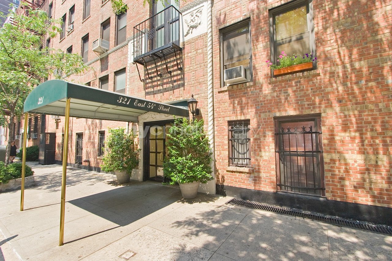 History of the Building:- 321 East 54th Street is a charming red-brick, mid-block building erected in 1929 and converted into a coop in 1989. There are a total of 11 floors and 103 apartments. The building has a canopied entrance with a six-step-down lobby and a two-story rope pillar surround and tall arched windows in the center of the second and top floors. On the facade of the building, on the second story are attractive Hellenic-style bas-reliefs.