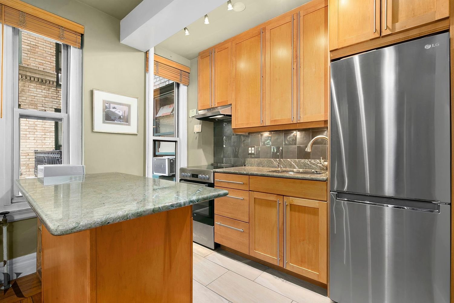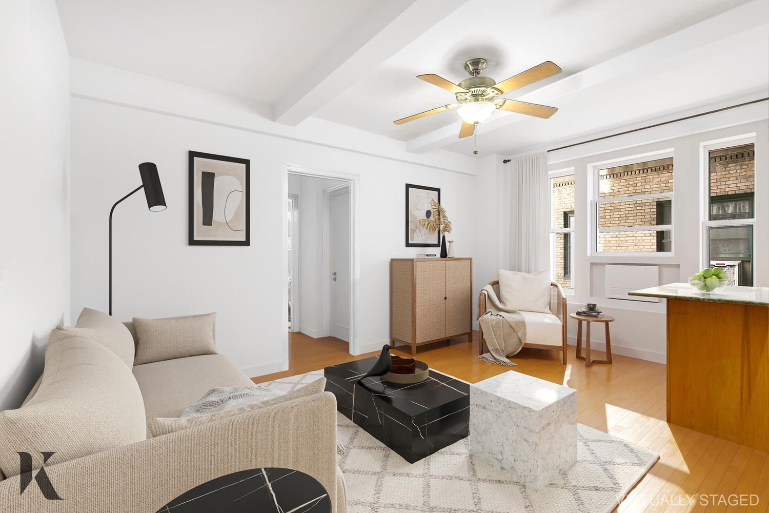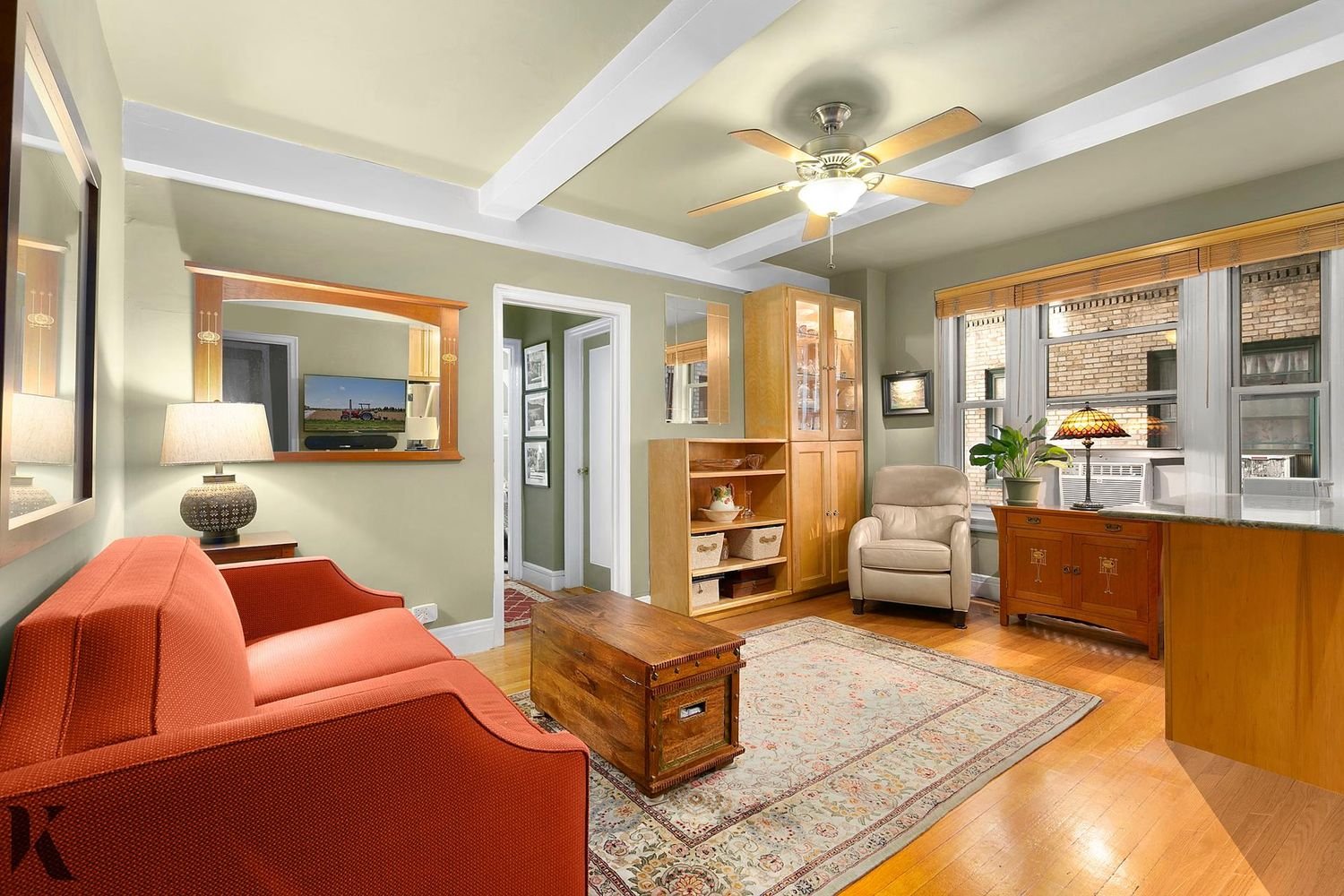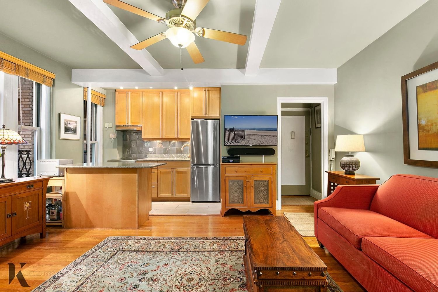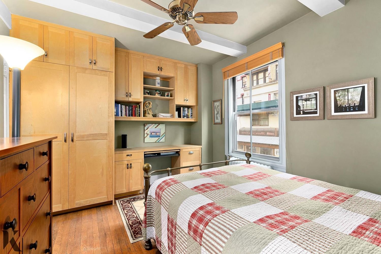 Welcome to Unit 207: The pristinely kept one bedroom, one bath unit in the historically renowned Whitby. Enter within a formal foyer- leading into the sun-drenched living space with ample room for entertaining, lounging, and dining. The room incorporates original high beamed ceilings, West facing windows, and a custom built in storage and display unit. The windowed kitchen , seamlessly integrated into the living space ,comes equipped with modern and updated appliances including an LG refrigerator, British imported Beko oven (convection w/ electric stovetop), Franke sink, Grohe faucet in addition to an Aqua Pure drinking faucet (triple filtered, including fluoride cylinder). Unit 207 has no shortage of storage, you’ll find an additional spacious closet that directly faces the renovated windowed bathroom which boasts a Bain Ultra spa tub (Thalassa 50 series), Toto Utlramax toilet, Suneli cabinets, Italian-made Miro sink faucet, with a Ginger towel bar and gallery shelf. Designed with self-care in mind. The bedroom has Southern and Western windows which have been additionally soundproofed to provide perfect serenity. The room features an exceptionally built custom desk, filing drawers and closet space which can be used for an in-house office or vanity. The apartment features hardwood floors, windowed AC units, custom wood blinds, and ceiling fans in both the bedroom and living area; a combination of luxury and pre-war charm.