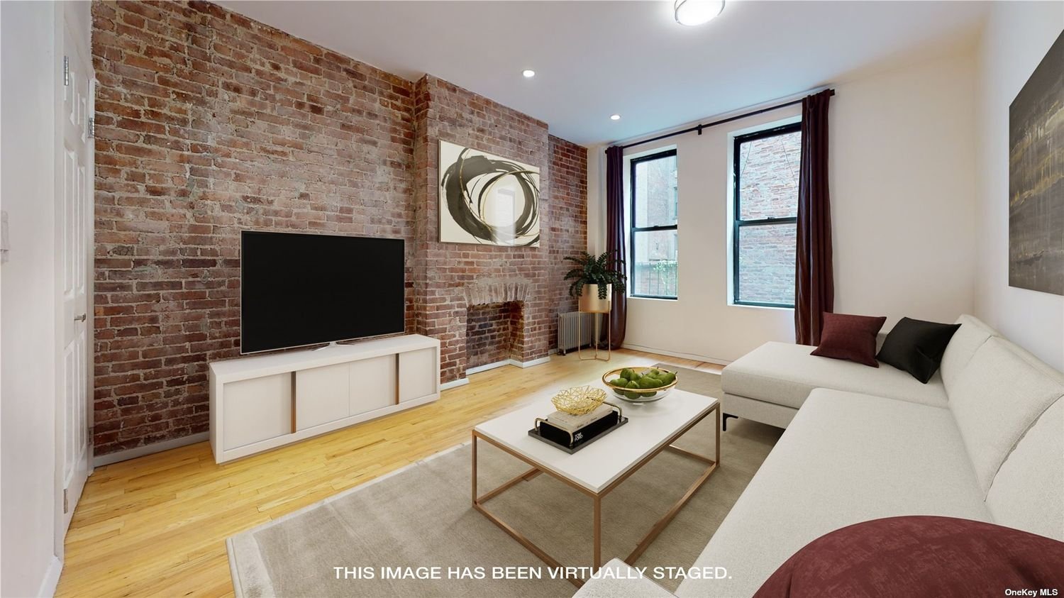 Beautifully renovated one-bedroom, one-bathroom apartment located in the heart of Upper East Side. Apartment 5 is a lovely unit with over nine-foot ceilings and newly redone oak floors. Sunny southern exposure lights up the newly renovated living room with a decorative fireplace, and a sand washed exposed brick wall. The renovated kitchen open to the living room features a quartz countertop, a new stainless steel refrigerator, and a new stove, a beautiful backsplash, and plenty of cabinet space for storage. The fully renovated windowed bathroom offers sleek modern finishes. A cozy quiet north-facing bedroom makes this apartment even more charming. Washer/dryers are permitted and could easily be installed in the unit. 336-332 East 77th Street is a beautiful red brick co-op comprising three buildings and 57 units. The building recently completed an extensive hallway and lobby renovation as well as an exterior brick masonry. 880 Shares.