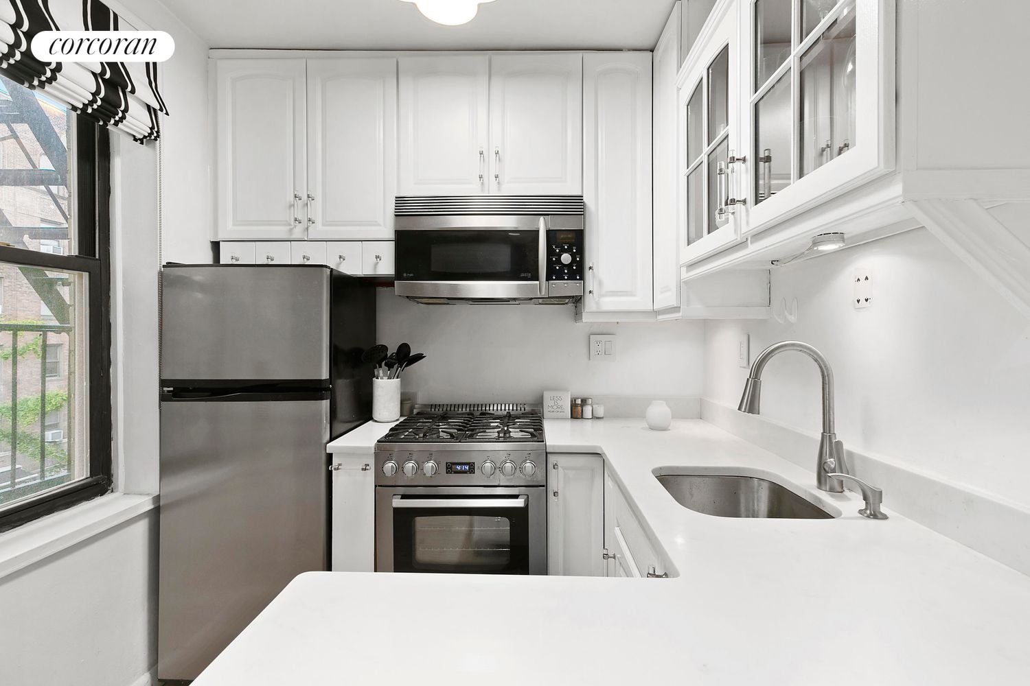 From the moment you walk into this beautiful move-in-ready studio you are welcomed by a charming view of the tree-lined street through three large windows. The renovated windowed open kitchen with stainless steel appliances and quartz countertops has an abundance of storage space. The apartment features hardwood floors throughout, beautiful window treatment, a jacuzzi bath, and excellent closet space. This chic apartment makes for a lovely primary residence or get away pied-a-terre! Topping it off, is a low monthly maintenance! This well run, financially sound coop has a live-in super, renovated lobby, bike storage, laundry room, and a landscaped backyard with seating and a barbecue. This flexible coop allows co-purchasing, guarantors, gifting, and pied-a-terres. Located close to subways, great restaurants, and shopping, enjoy all that this desirable Sutton/Turtle Bay area has to offer! Pets are allowed. 75% financing. There is a monthly assessment of $158.84 ending December 31st, 2023 for local law 11 work, which has been completed. There is a tax assessment of 216.75 ending on April 30th, 2023 for a Real Estate Tax Abatement.