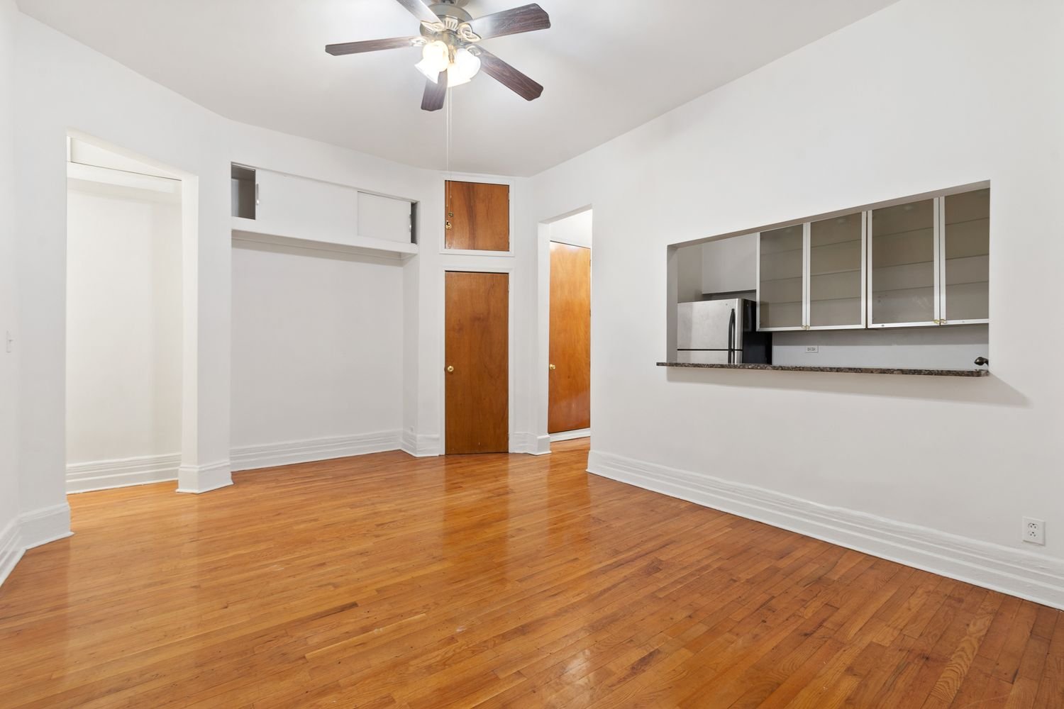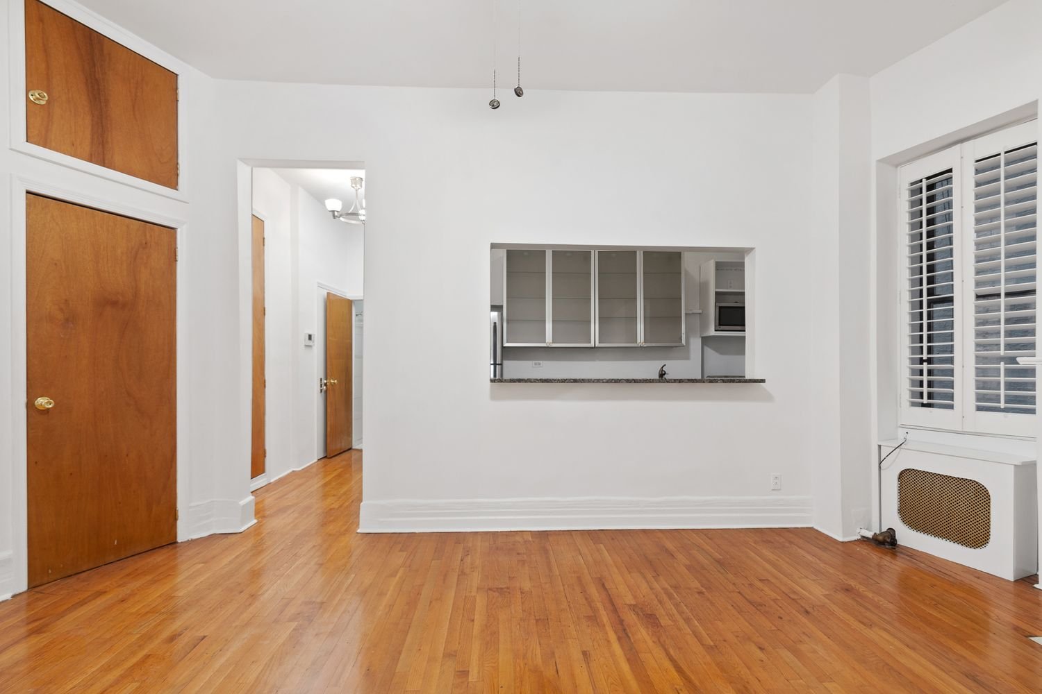 Beautiful Southwest facing One Bedroom, One Bath Apartment with hardwood floors, plenty of light, a windowed kitchen, and two large closets & tall ceilings.
