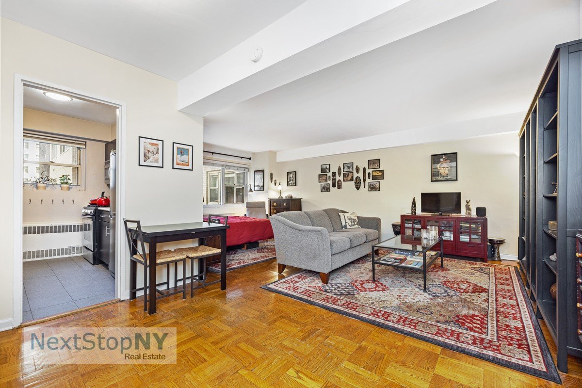 Expansive alcove studio offers a fabulous layout with a wide entry foyer, a generous 22′ long living room and large sleeping alcove. The windowed kitchen is fully renovated with stainless steel appliances including a dishwasher and granite countertops. The spacious living room is perfect for entertaining with ample space for a dining area. There is a separate dressing area with a large walk-in closet. The unit features parquet flooring throughout, and Northern exposure. Make this your primary residence or use it as your pied-a-terre. Welcome Home! The Sutton East offers all its residents outdoor space with a landscaped roof deck overlooking Sutton Place and the East River, as well as 360 degree views of Manhattan. The Sutton East is a luxury post-war co-op featuring a 24-hour doorman, live-in superintendent, storage bins (fee), private parking garage (fee), bike room and laundry room. Parental purchasing, gifting, co-purchasing, pied a terres and pets permitted! Best of all, the Sutton Place neighborhood has so much to offer: Whole Foods, Trader Joe’s, Bloomingdale’s, great bars and restaurants, the East River Promenade, 4/5/6, N/Q/R/W, E/M/F and M31, M15 Select Bus Service are all nearby