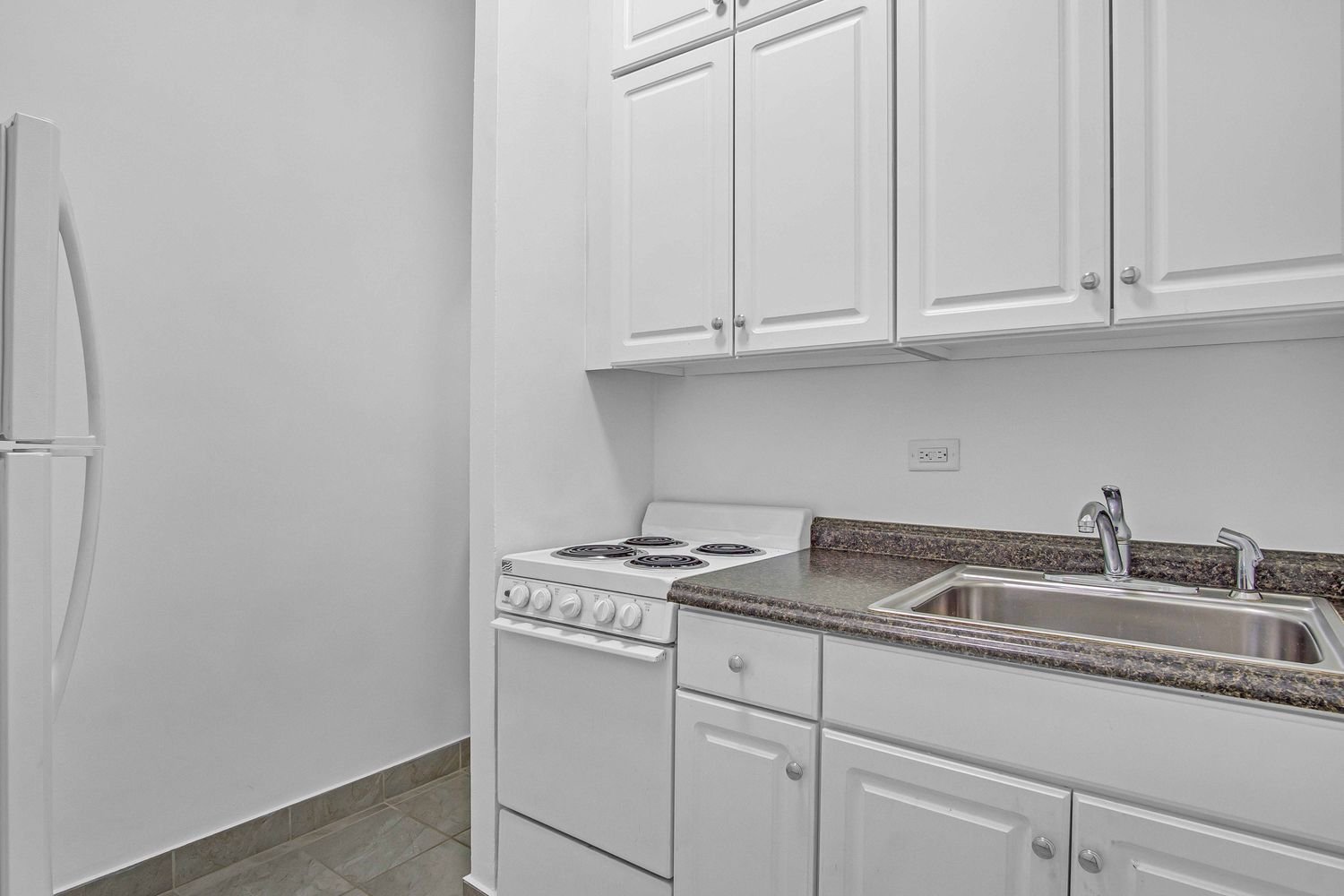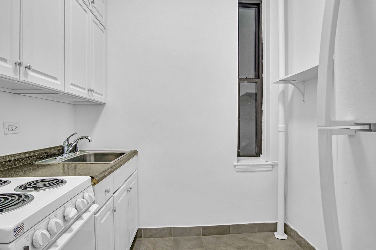 This spacious loft-like two room studio features soaring 11.5 foot ceilings, hardwood floors throughout, a separate eat-in window kitchen. The living/sleeping area is very spacious and can fit a queen size bed, dresser, full size couch and entertainment system. The apt has 2 large closets. The bathroom has been updated. The building has laundry in the basement and a great handy super.