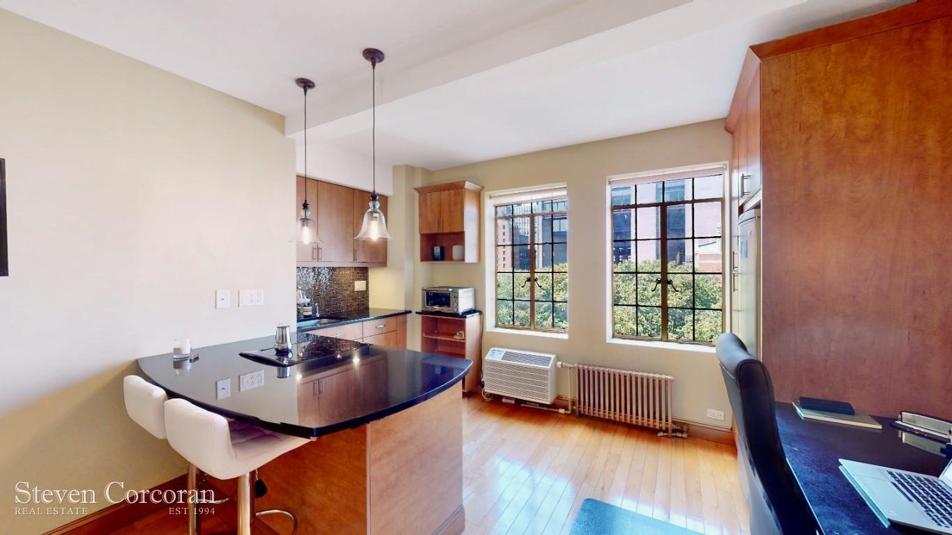 Pre-war charm and modern renovation blend together in this meticulously renovated 1 bedroom home in historic Tudor City. This 9th floor gem with sunny western exposures overlooking lovely Tudor City Park features a gorgeous open kitchen with all new appliances, black granite counter top with Murano Italian glass back splash and beautiful wood cabinetry. Every detail was attended to in this stunning renovation while retaining original architectural details. The superbly renovated windowed bath with glass shower stall showcases beautifully detailed tile work throughout. Updates include all new electric, plumbing, solid oak wood floors and two in-wall ACs as not to interfere with the historic and charming casement windows. This classic building offers a fantastic rooftop terrace with beautiful plantings and breathtaking city and East River views. Pied-a-terres and subletting are allowed. Utilities are included in the maintenance. Convenient to Grand Central, subway and First Avenue bus. Non-smoking building, dogs not permitted. Tudor City is between 1st and 2nd Avenues on the East Side between 41st and 43rd Streets. Tudor City is the pre-war development created by Fred French in the 1920’s. An oasis separated from the hustle of Midtown Manhattan, many residents enjoy walking to work or relaxing in the Tudor Parks. . Three blocks from Grand Central Station and convenient to all transportation.