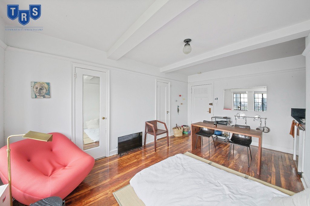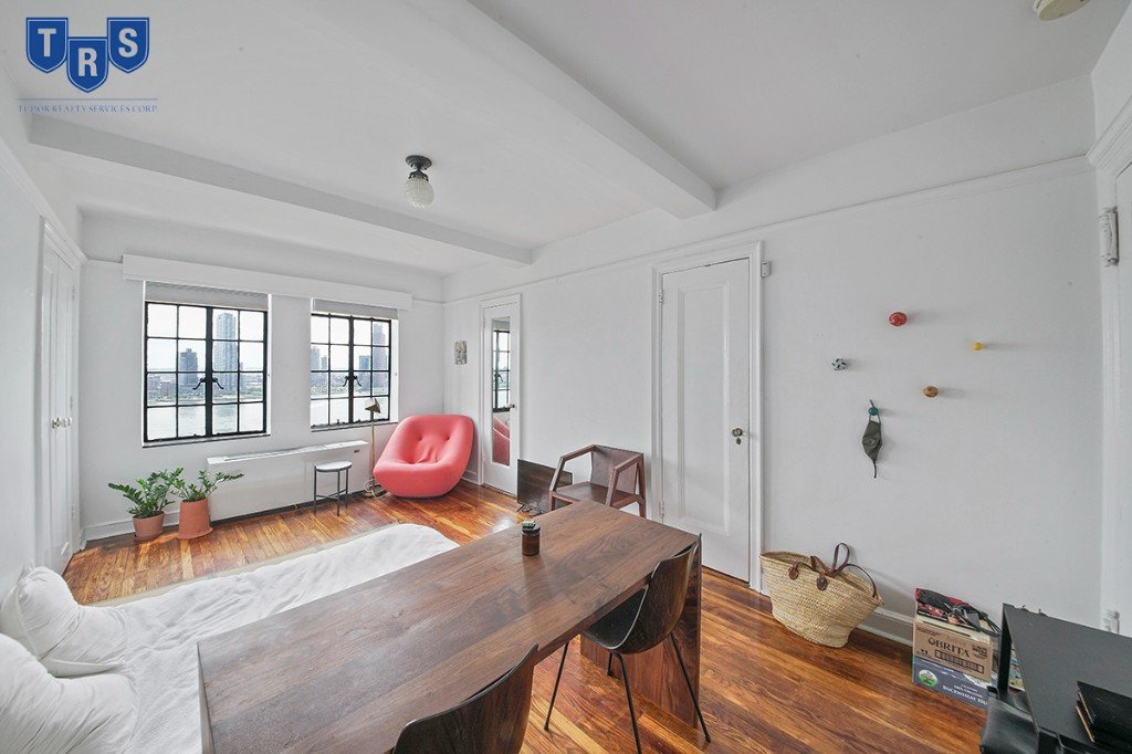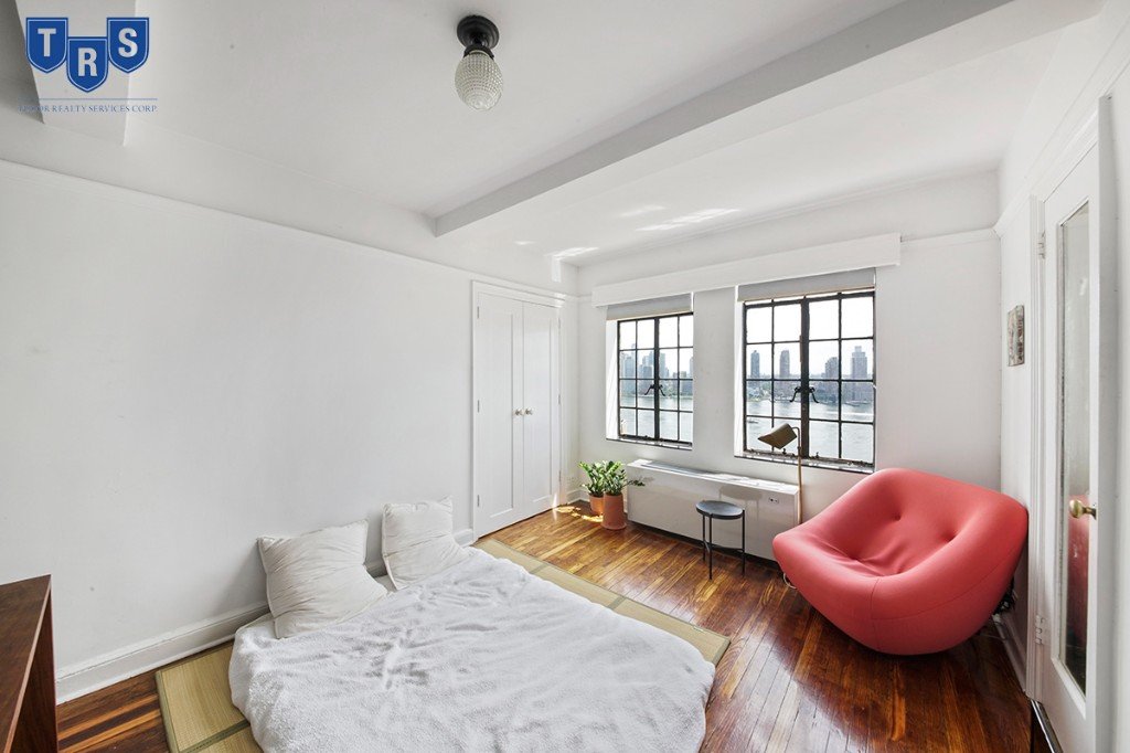 SUNNY HIGH Floor Pre War RIVER VIEW studio for SALE – Full Service Bldg – MT includes ELECTRIC ! What a VIEW ! Stunning light and River/UN views from every window. This Super -sunny and very charming unit features an open hotel style efficiency kitchen equipped with custom cherry cabinetry, a 2 burner cooktop built into the counter, wall mounted microwave, under counter fridge and dishwasher . A thru the wall HVAC combo air and heat unit is installed under the window so as not to spoil your view! Windowed bath with loads of charm has the classic 1920’s subway tile and stall shower (and a river view out that window ! ) Two extra large closets ; one a deep walk in, the other a bonus wider than average closet . Original details that remain : the gorgeous hardwood floors , high beamed ceilings and the lovely steel casement windows making it feel like a trip to Paris as you gaze out on the water.. and yes -MT includes ELECTRIC. And what a LOCATION . Windsor Tower is an immaculately kept FULL SERVICE co op in the heart of Midtown East … Lobby features stained glass and tapestries and a handy lobby store containing all grocery necessities and a cash machine should you not feel like going out in the rain ! Amenities include : 24 HR Doorman and Laundry Room plus 24 HR GYM on premises ( fee) . A gourmet cafe , dry cleaner/ tailor and post office are all in the building. Tudor City is a tranquil tree lined oasis tucked away between 1st and 2nd Ave, steps from Grand Central. Relish the quiet in the lush green privately maintained parks across the street … yet minutes away are Bloomingdale’s ,Times Square and the East Village! Pets (yes dogs!) pied a terres ,and buying for a child are all permitted. Subletting ok after 3 years of owning with easy board approval . Windsor Tower is a smoke free building.