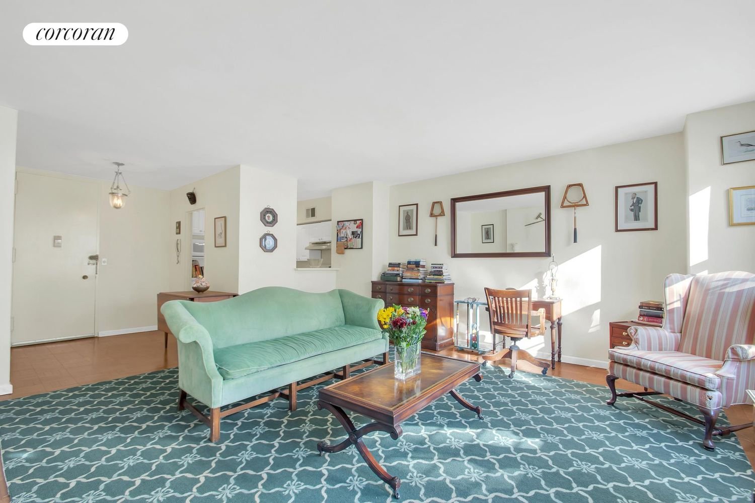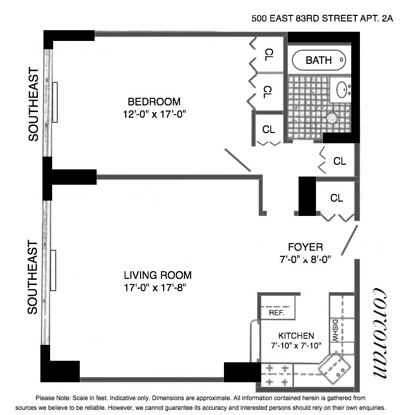 Amazing Value! Fantastic Full-Time Residence or Part-Time Home in the City! Welcome Home to this incredibly charming and truly spacious one-bedroom cooperative apartment on the Upper East Side of Manhattan. As you enter into the foyer of this lovely and large (approximately 800 square foot home), you will be impressed by the living area’s gracious size and functional layout. At its center you will find a decorative fireplace alongside a built-in bookshelf that will showcase all of your favorite reads and treasures. And to the left of these cozy features is an expansive wall-to-wall window (with built-in storage below) which allows a nice southeastern light to pour in on this quiet, second floor apartment. To the left of your entry from the foyer is a small, but efficient kitchen that has full-size and clean appliances including a gas range, stove, dishwasher, microwave, and fridge. The white lacquered cabinetry shows fantastic quality and condition and can perfectly store all of your kitchen item needs. A bonus feature includes a partially opened wall that allows for additional light to come through the space and for the ability to connect with your guests in the next room. To get through to the bedroom and bathroom, you must first walk through a separate area that contains two large closets. Straight ahead in this space lies the partially marbled bathroom with a pedestal sink and a full-size tub and shower. To the left you will find the primary bedroom currently housing a queen-sized bed, a twin-sized bunk bed, dresser and with much more room to spare. A generously sized closet ready to be customized for further efficiency will enhance the great storage options this unit already has to offer. Additional apartment details include dark hardwood parquet floors throughout, substantial southeastern exposure from both rooms, 8.25 foot ceilings, and four total closets including the foyer entry closet. Washer/Dryers are not allowed to be installed within the unit. Heat/Air Conditioning system is through the wall in each room. 500 East 83rd Street is a full-service cooperative building with a 24-hour doorman and concierge, resident manager, gym, weekly fitness classes, indoor pool, roof deck, a central laundry room, separate storage room (with units currently for rent), a resident-only garage (waitlist), and bicycle room. Pets are welcome and 75% financing is allowed. Flip Tax of 2% payable by buyer. Pied-a-terres permitted. Subletting case-by-case. This wonderful building is located in the Yorkville neighborhood on the Upper East Side of Manhattan in New York City on the corner of East 83rd Street and York Avenue. Yorkville offers many fantastic restaurants and cafes, shops, schools, and transportation options. Less than a one mile walk to Central Park and only a few minute’s walk to the East River Promenade and Carl Schurz Park. 500 East 83rd Street is a cooperative building that requires a purchase application and board approval (please plan accordingly). For any questions or to request a private showing, please reach out to the listing agent who will be happy to assist!