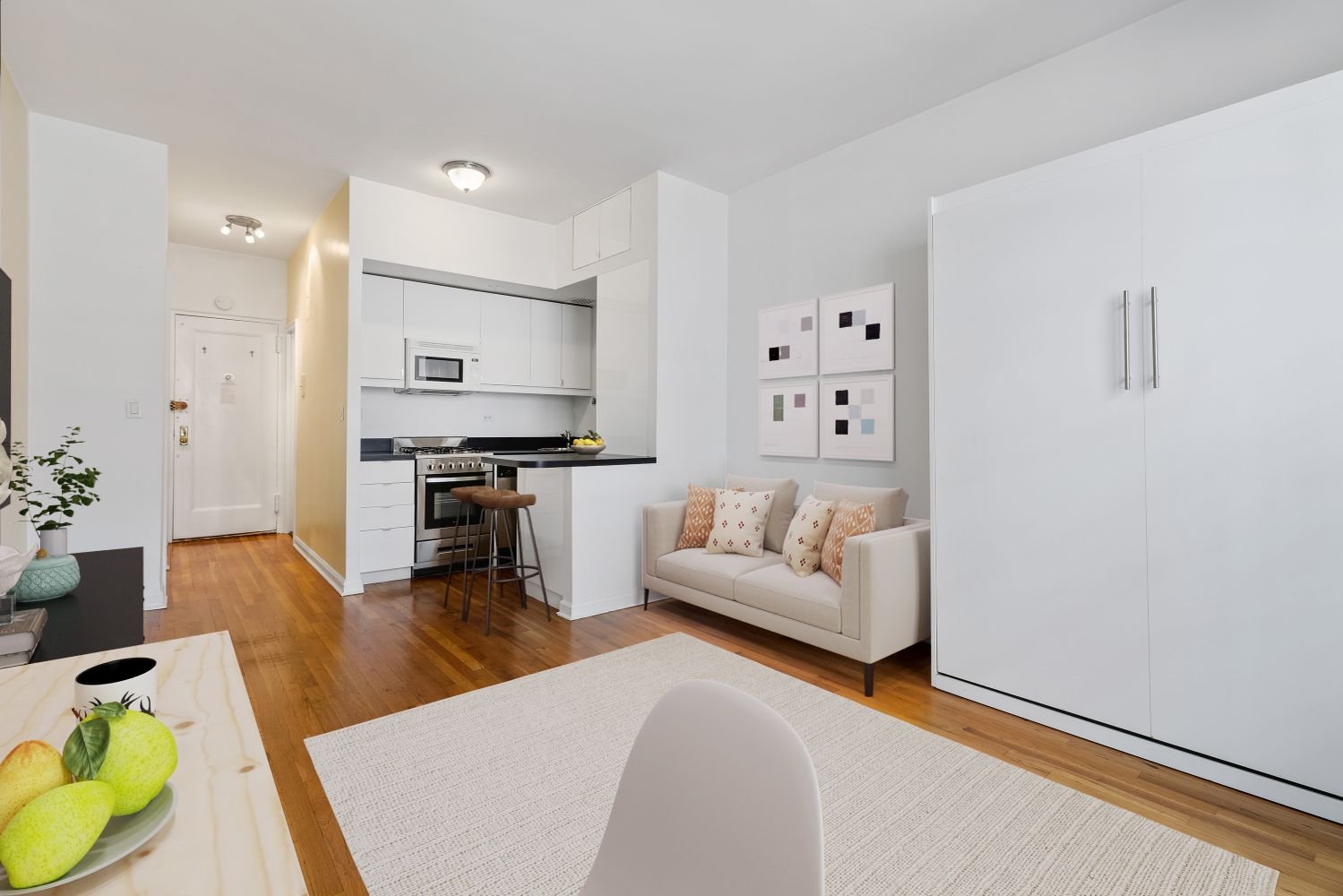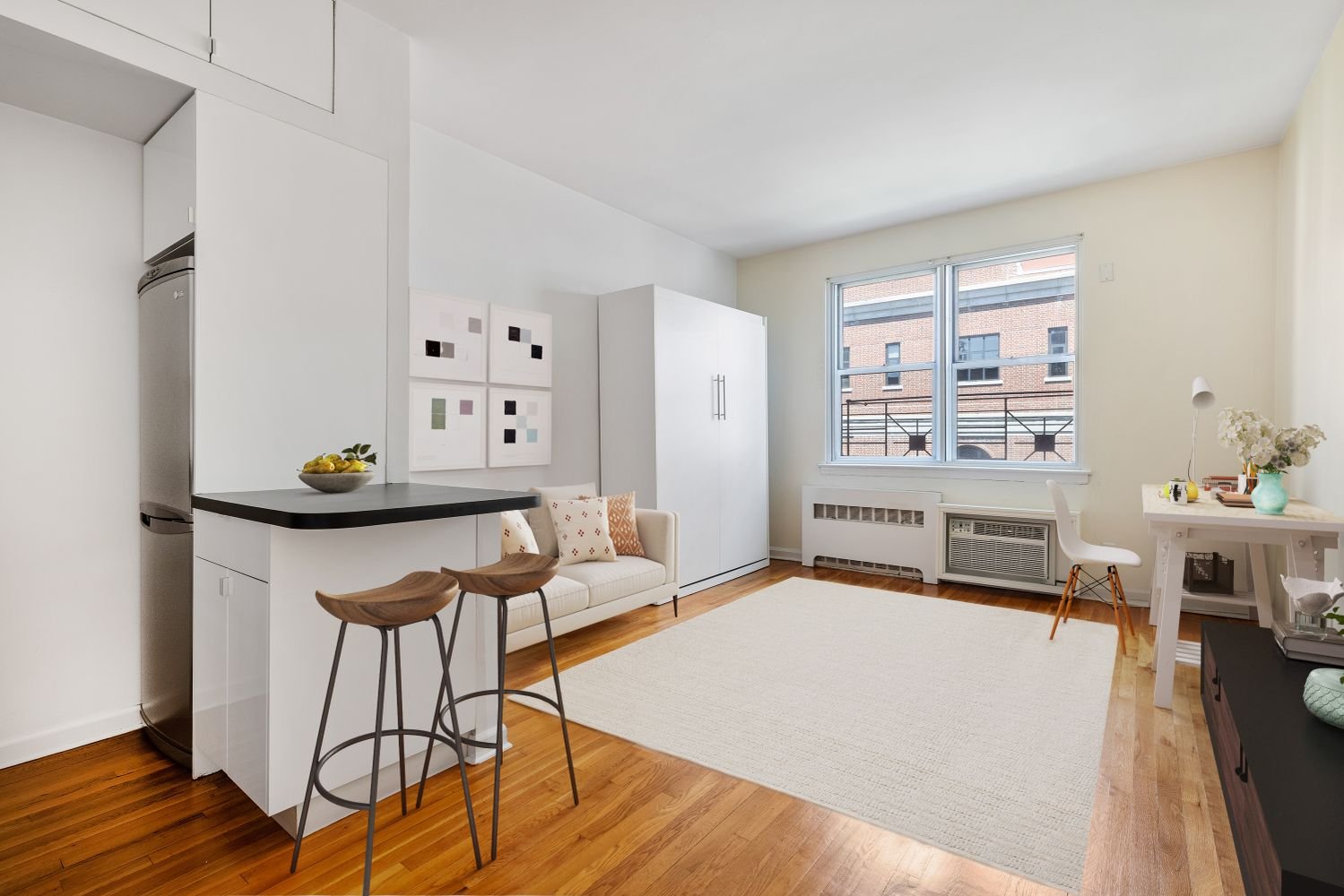 You’ll feel right at home in this recently renovated Studio diagonally across the street from Carl Schurz Park. Perfect as a starter apartment or pied-a-terre, this top floor, recently renovated apartment has an open kitchen with full size stainless appliances including a dishwasher. There is a renovated bathroom, through the wall AC, two large closets and high ceilings. Two large north facing windows allow plenty of light and an oblique view of the Park. For an extra measure of quiet on an already quiet street, there are recently installed City Windows. In winter there is even a peak at the East River. The building has a live in Super, laundry room, elevator and additional basement storage for which there is a waiting list. The Co-op Corporation is comprised of 3 adjacent buildings just off the corner of East End Ave. and across from the entrance to Carl Schurz Park with its two dog runs, a park conservancy that sponsors numerous activities and with a wonderful river side promenade. Joggers will enjoy the 32 mile Manhattan Waterfront Greenway. The 2nd. Ave Subway is 3 and 1/2 blocks away, the M31 is 1 block away at York Ave. and the 86th St. cross town bus is 2 blocks away. At 90th St and the East River, you can the Ferry to Queens and Lower Manhattan. With board approval, sublets allowed, dogs and cats allowed.