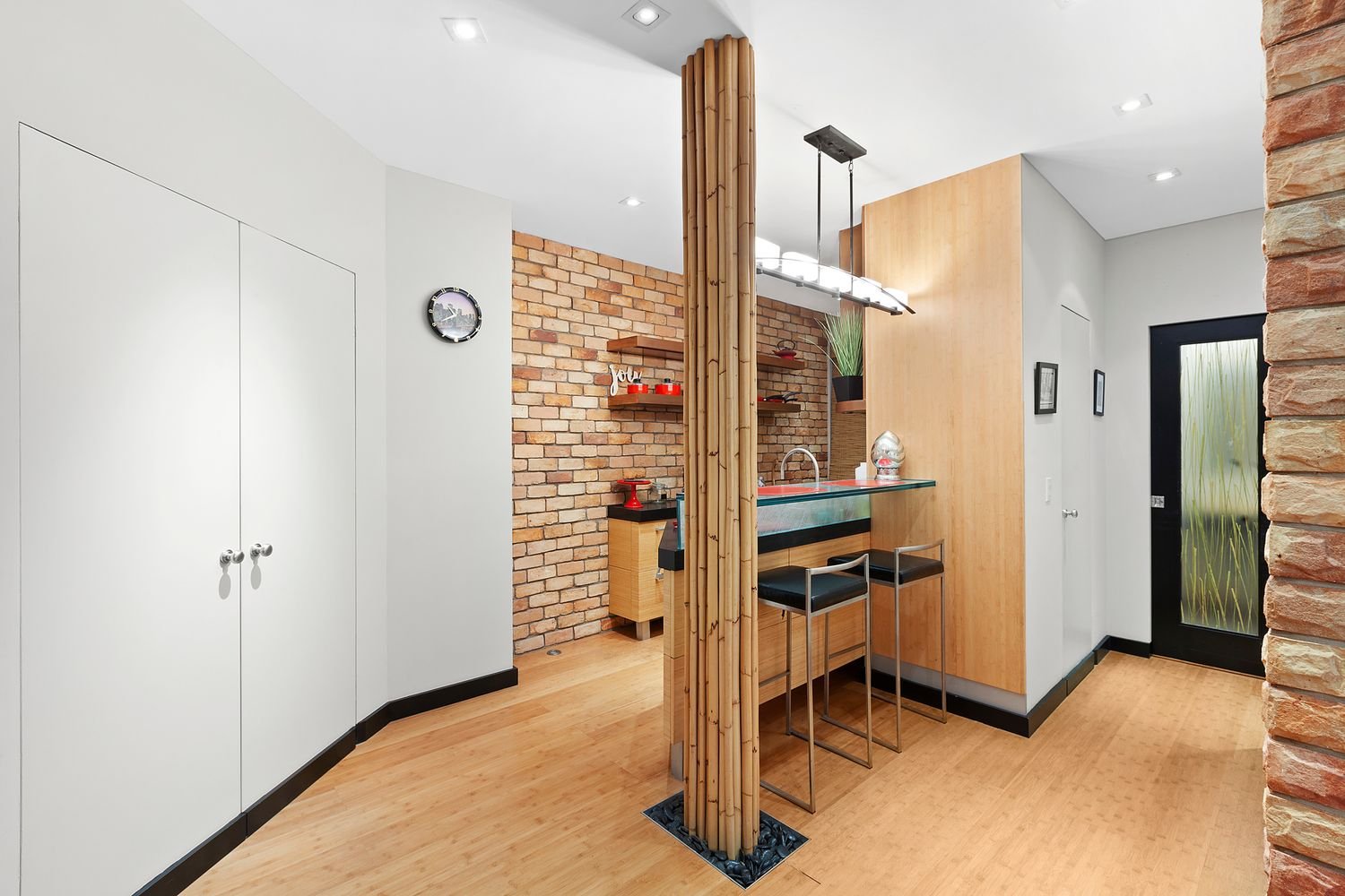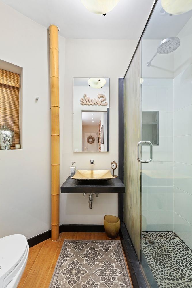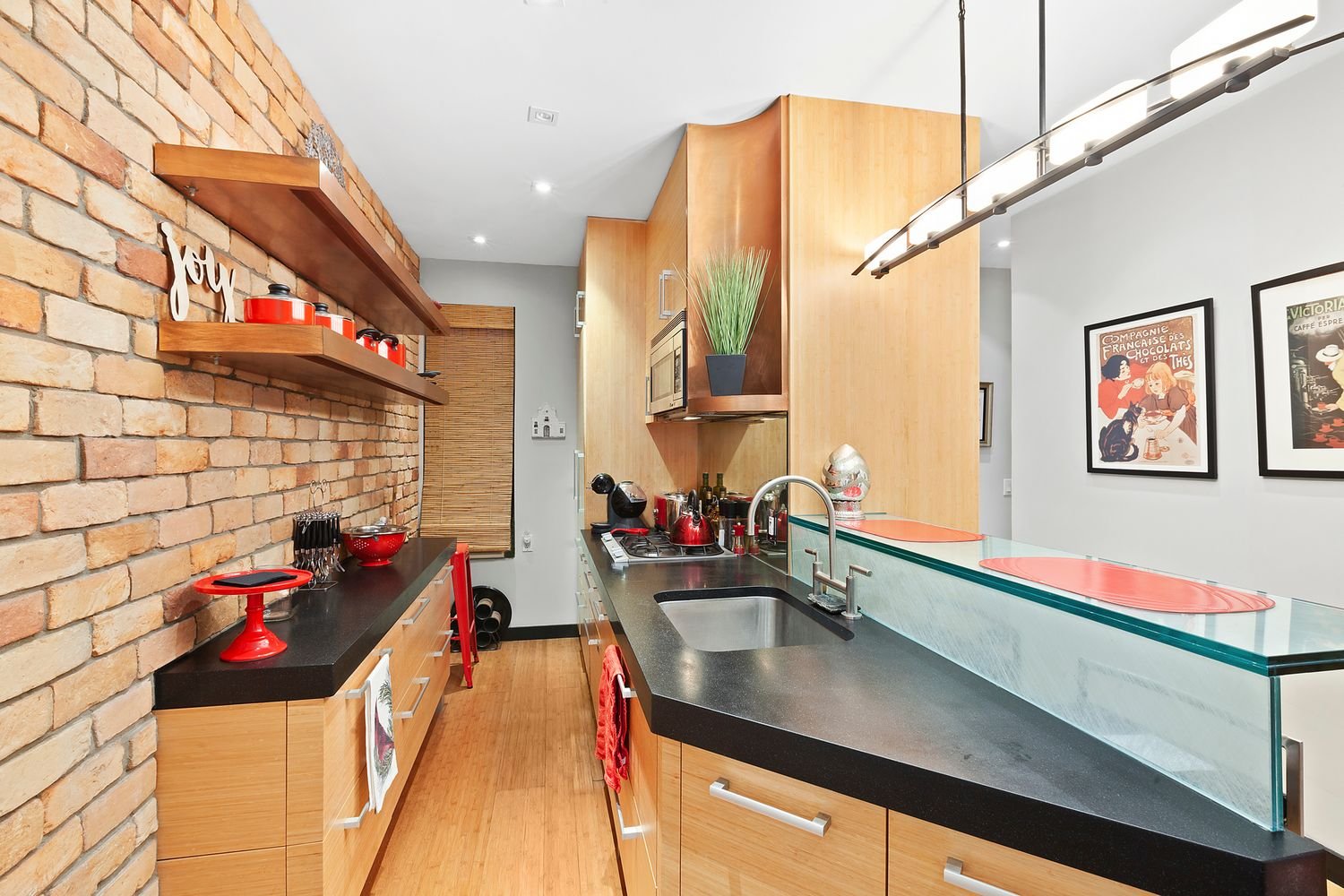 This beautifully renovated, distinctive one-bedroom home features high ceilings, hardwood floors, partial River views, and a decorative fireplace. The combined living and dining room are ideal for quiet evenings at home or entertaining with charming streetscape views. The renovated open kitchen has an exposed brick wall and features custom cabinetry, a breakfast bar for casual meals, and high-end appliances. The generously proportioned bedroom also features plenty of light and a charming view. There is ample closet space and a renovated bath with a large walk-in rain shower.