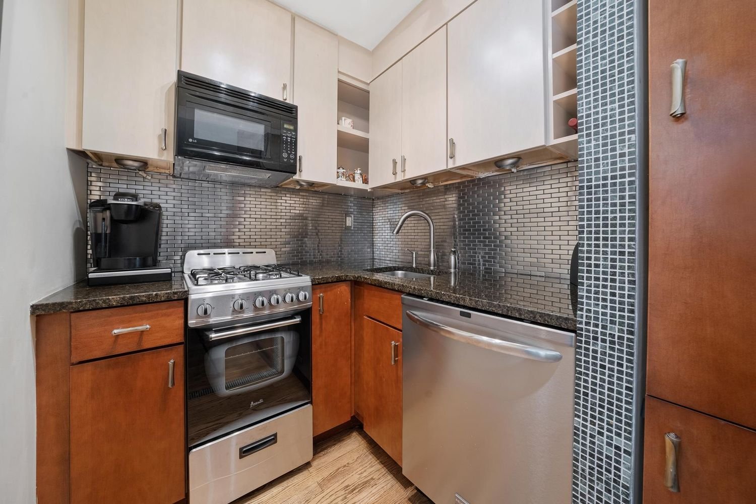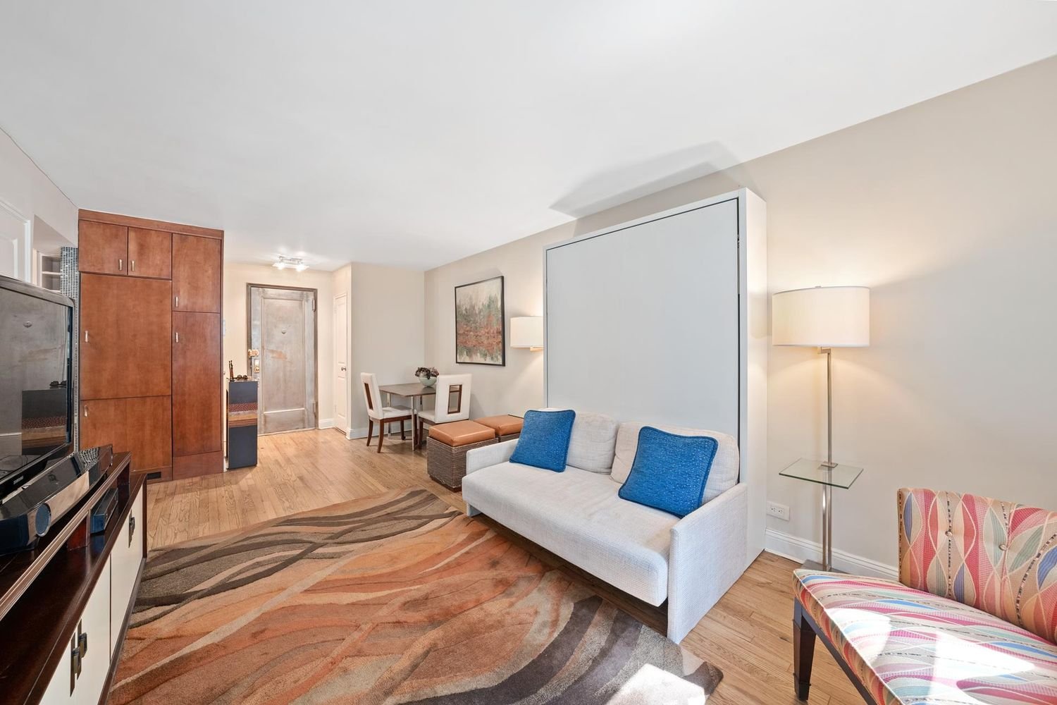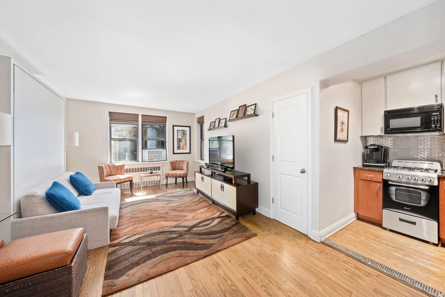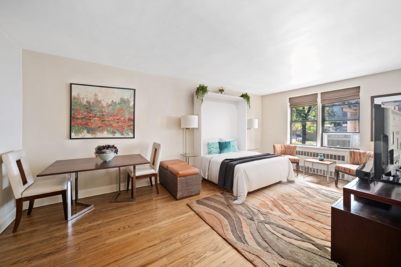 A Gorgeous Greenwich Village Studio. Unbeatable Location between Mercer and Greene in an Elevator building with a beautiful verdant common garden. Features include a Kitchen with a functional aesthetic where Cherry wood and bleached oak cabinetry is combined with stainless steel, glass mosaic tiles and granite counters, 3 Large windows that let in lots of light and take advantage of a lovely fountain view over Mercer St, Beautiful timber floors, Windowed bathroom with marble and stone surfaces that complement the crisp white fixtures & stainless-steel accents. 3 LARGE closets provide tons of storage. A high-end Murphy Bed in the living room works well in the space and is included in the sale (as can be most of the furniture – just bring your toothbrush) The building is meticulously maintained by the live in super and has recently redone its laundry room, elevators, and lobby. Garage in Building. Pets, Guarantors, Pied-a-terre, Parents buying for working children and international purchasers allowed. Unlimited subletting policy after 2 years of ownership. PLUS, the building is approved for the coop STAR monthly rebate for Primary Residence owners. Maintenance includes your Real estate Taxes, heat, hot water and electric. BEST LOCATION – only a couple of minutes from iconic Washington Square Park with International Shopping, restaurants, and art galleries everywhere! Buses and subways are close.
