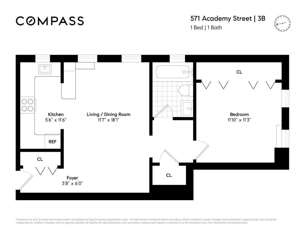**This home qualifies for First Republic’s Eagle Loan Program. Extremely low interest rate offered!** Presenting the gorgeously renovated apartment 3B in Inwood’s Premiere Condo Building at 571 Academy Street. Apartment 3B is a perfect choice for any new homeowner or investor. Every detail has been retouched in this home, and it has newly stained kitchen cabinets, refinished hardwood floors, an updated bathroom and a brightening new paint job. The living room is spacious to hold both living room furniture and a dining area. The kitchen features stainless steel appliances and lots of storage space for all your cooking essentials. There is open concept kitchen where you can cook and entertain simultaneously. The bedroom is brightly sunlit and king-sized with a full wall of closet space. The apartment has three spacious closets throughout. The building is pet friendly with laundry on site and a 10% down payment Is permissible.
