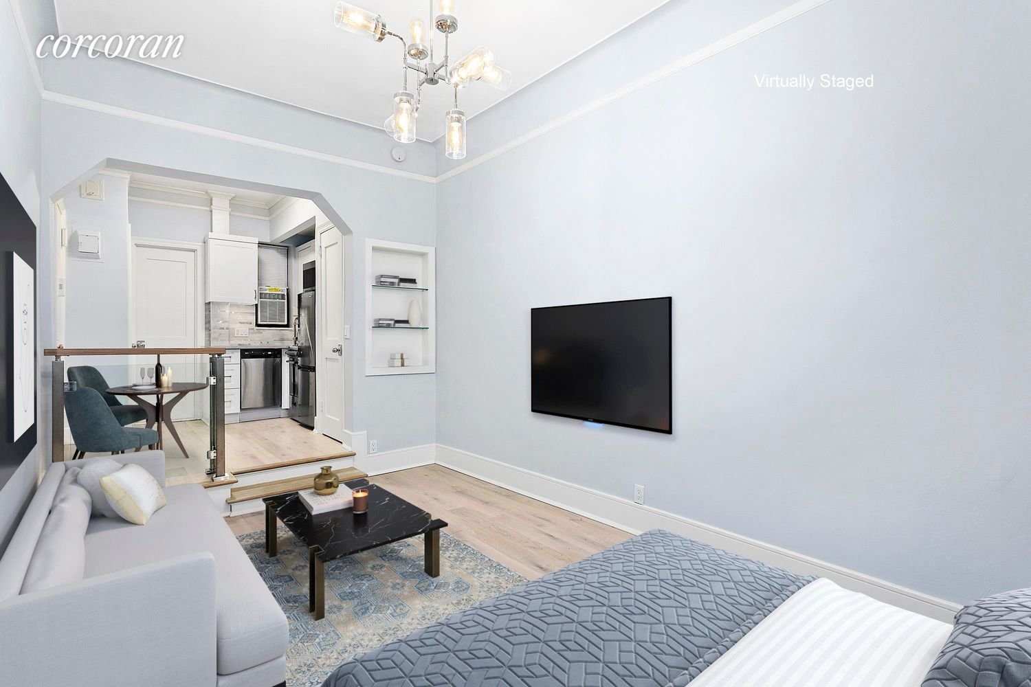 Come see this Beautiful impeccably renovated studio in Prime Carnegie Hill, just a block away from Central Park! Apartment will also be delivered with brand new furniture included in the sale. This well laid out studio offers a sunken living space, separate dining/kitchen area, windowed kitchen with brand new stainless appliances and tiled windowed bathroom. Apartment also features hardwood floors throughout, 2 large closets with ample storage space, and high ceilings. Located on a charming tree-lined block in a well-maintained elevator co-op with laundry in the basement and part time super. Building allows pieds-a- terre and co-purchasers as well. Photos are virtually staged.