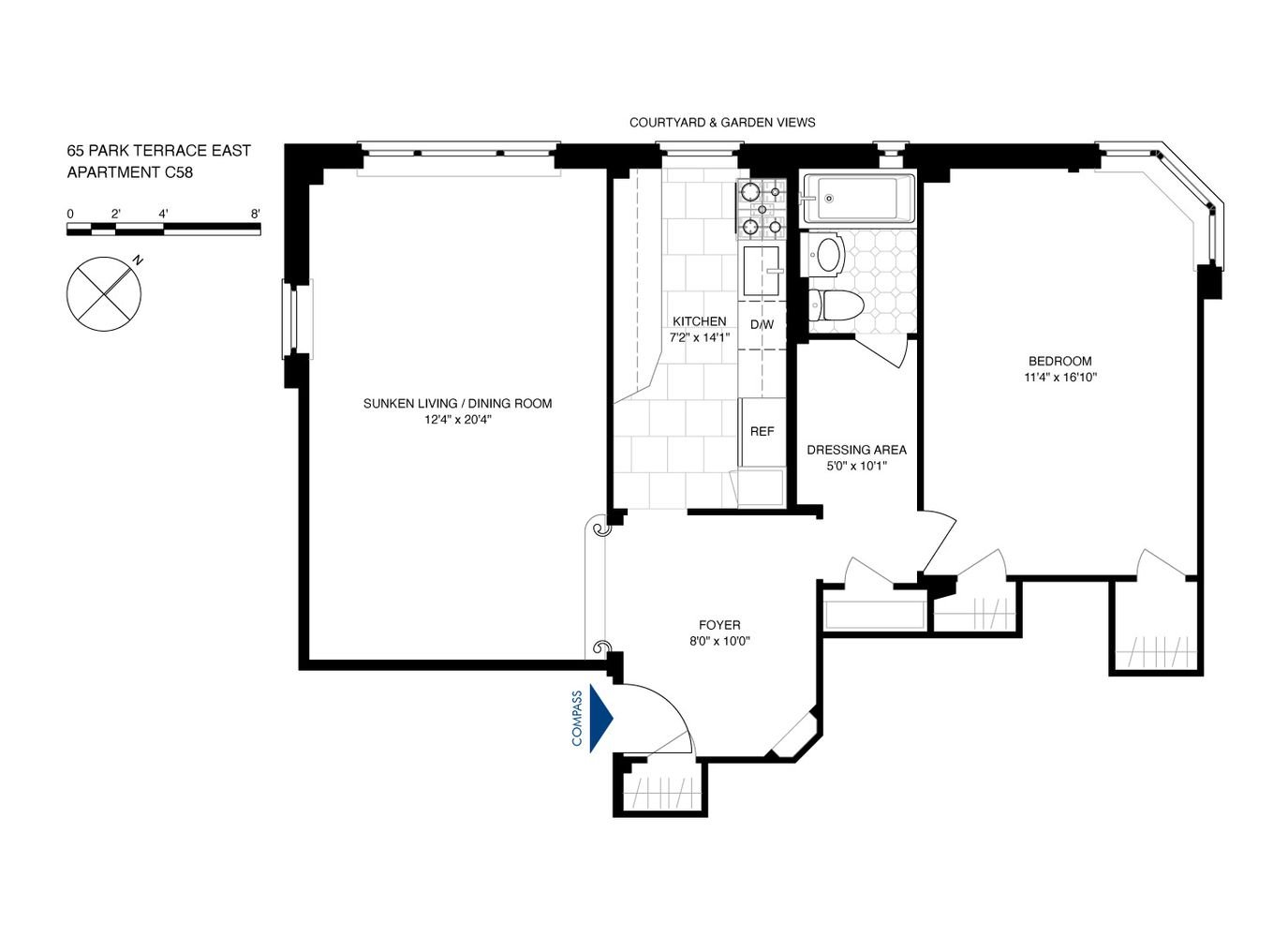 Quietly situated in the sought-after Park Terrace Gardens, a top-notch pet-friendly Co-op comprised of 5 buildings surrounding lushly landscaped private gardens. Residents also enjoy common roof decks with barbecue, on-site management, a live-in super, laundry, concierge, bike storage (wait list), FREE high-speed Internet access, is over 80% owner occupied and has very strong financials. Near the A express and 1 local trains, BxM1 express bus, Metro-North Hudson Line, shopping, restaurants, wine bars and glorious Inwood Hill Park which offers hiking trails, running paths, ball fields, dog runs, kayaking and plenty of green space for picnics, relaxing, enjoying free outdoor summer concerts or evening yoga. Nearby Isham Park is home to a Saturday Green Market as well. Residents of the community have access to Columbia University’s Lawrence A. Wien Stadium track and can purchase memberships at The Dick Savitt Tennis Center without sponsorship by current members. The opportunity to have protected garden views and natural light all day long, all year long, is a rare and special thing indeed. Add affordability to the mix and this is almost too good to be true.