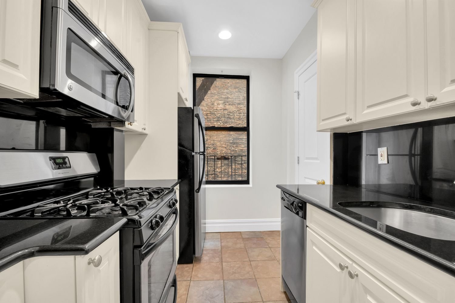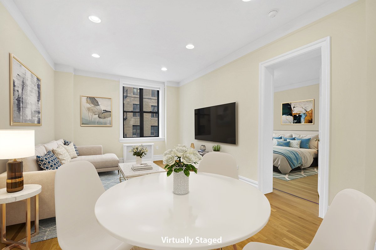 Yesteryear meets the Contemporary. This prewar 1 bedroom, 1 bath condominium, nestled on Riverside Drive is move-in ready. When you enter this home, you’ll be greeted with all the prewar charm such as, high ceilings, crown moldings, gorgeous hardwood flooring with inlay, recessed lighting, and plenty of closets, including a walk-in. The kitchen, gracious in size, has black granite countertops, plenty of cabinetry, stainless steel appliances that include a dishwasher. The bathroom, tiled in white, has a black granite floor and a deep cast iron tub. The living room and bedroom are not only generous in size but are bright and airy. The bedroom easily fits a king size bed, has North facing sky view windows, and another large closet.