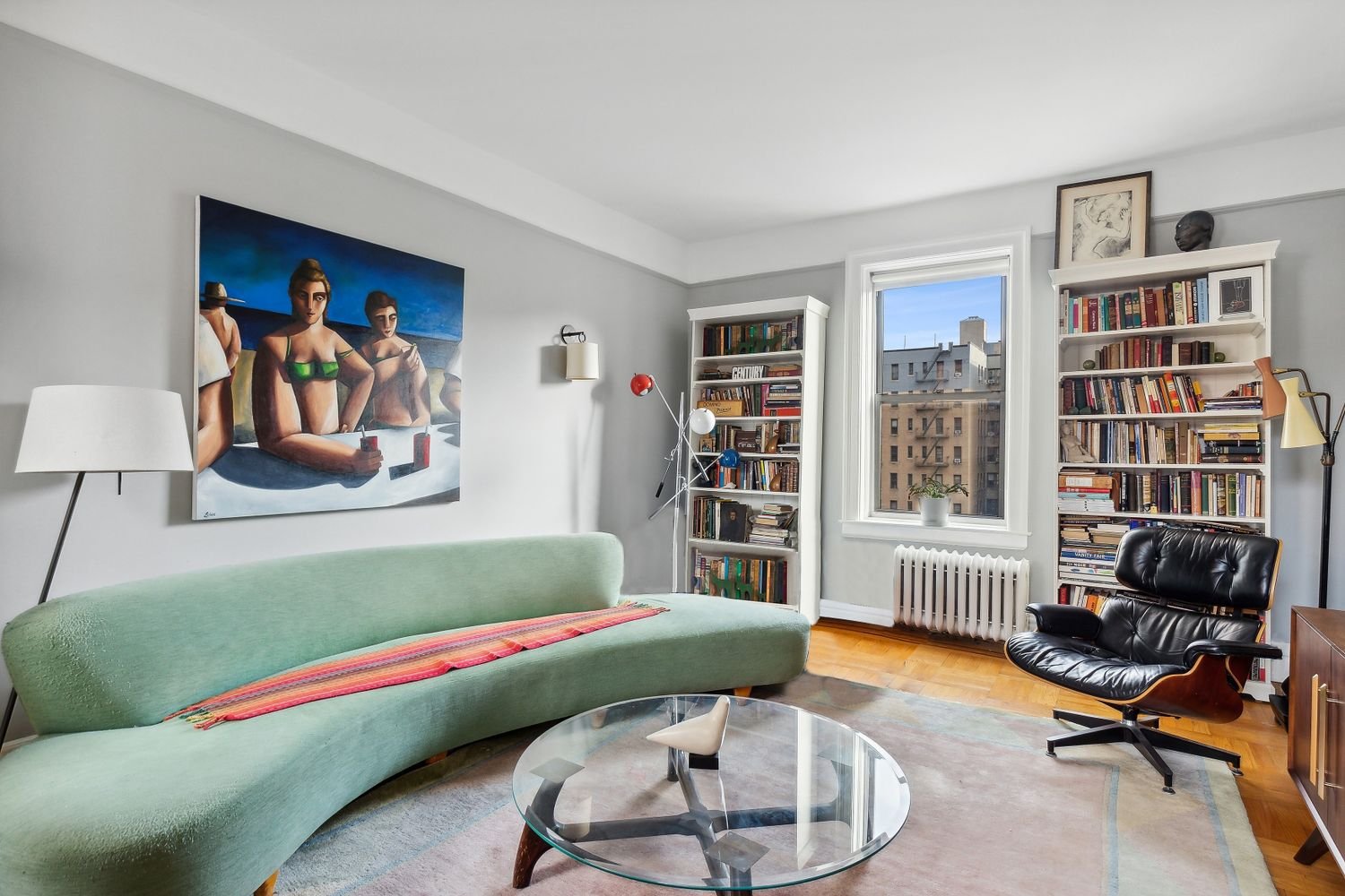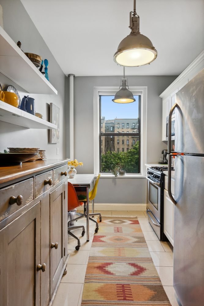 This prewar one bedroom is done right. Restored and renovated to perfection without compromising the authenticity of the era, here modern upgrades and old-world charm live in harmony. The result is a warm embrace from the moment you step inside. At the heart of the home is an inviting eat-in kitchen, thoughtfully designed with white cabinetry, subway tile back splash, white corian counters, stainless appliances and open shelving. Even the original dumb waiter has been converted to additional storage. Morning tea is a delight in this welcoming space with nothing but treetops and blue sky beyond. The living room, adorned with wall sconces and a French door, is nearly 13 ft wide with beautiful south and north exposures inviting lovely cross breeze and light all day. Indulge in a relaxing bath after a long day in your deep cast iron soaking tub surrounded by top-of-the-line tiles and workmanship. Afterwards, retire to your king-sized bedroom with space enough for seating area and desk where you are sure to have a restful night’s sleep with the addition of ceiling sound buffering. Other details of note include fully skim-coated walls, original metal door frames that have been stripped prior to painting for a clean look, new moldings, picture rails, 4 closets, updated electric, hardwood floors, new lighting, vintage hardware on all doors and sound-mitigation in the bedroom ceiling AND floor. All this plus an additional STORAGE UNIT is available for purchase.