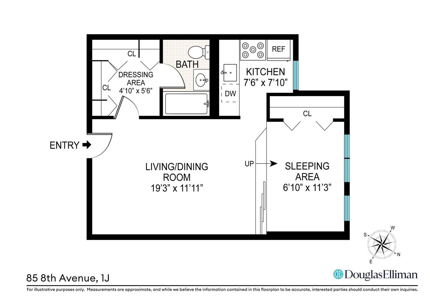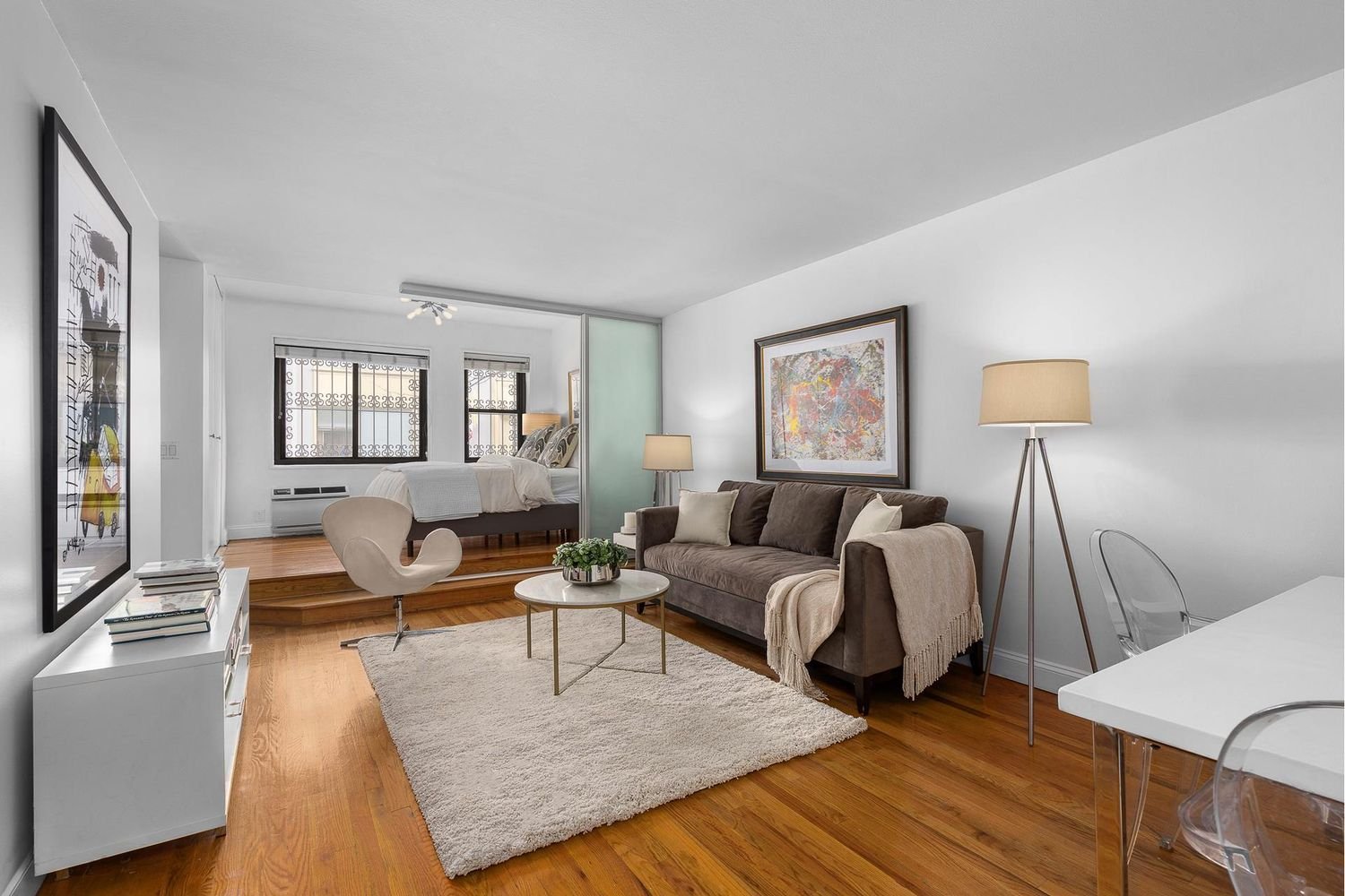 Large alcove studio in amazing location! North facing windows and great light. Fabulous scale and flow makes this feel like a one bedroom. Separate kitchen, dressing room and bathroom. Great closets in dressing room and sleeping alcove. Windowed kitchen with dishwasher. Located on Eighth Avenue between 14th and 15th Street, the building is at the crossroads of three of Manhattan’s best neighborhoods: Chelsea, the West Village, and the Meatpacking district. Transportation couldn’t be easier with the A/C/E and L lines seconds away from the building, the 1/2/3 one block away. The building features: – 24 hour doorman – Live-in super – Full time porter – Planted common courtyard – Laundry on every floor – Elevator.
