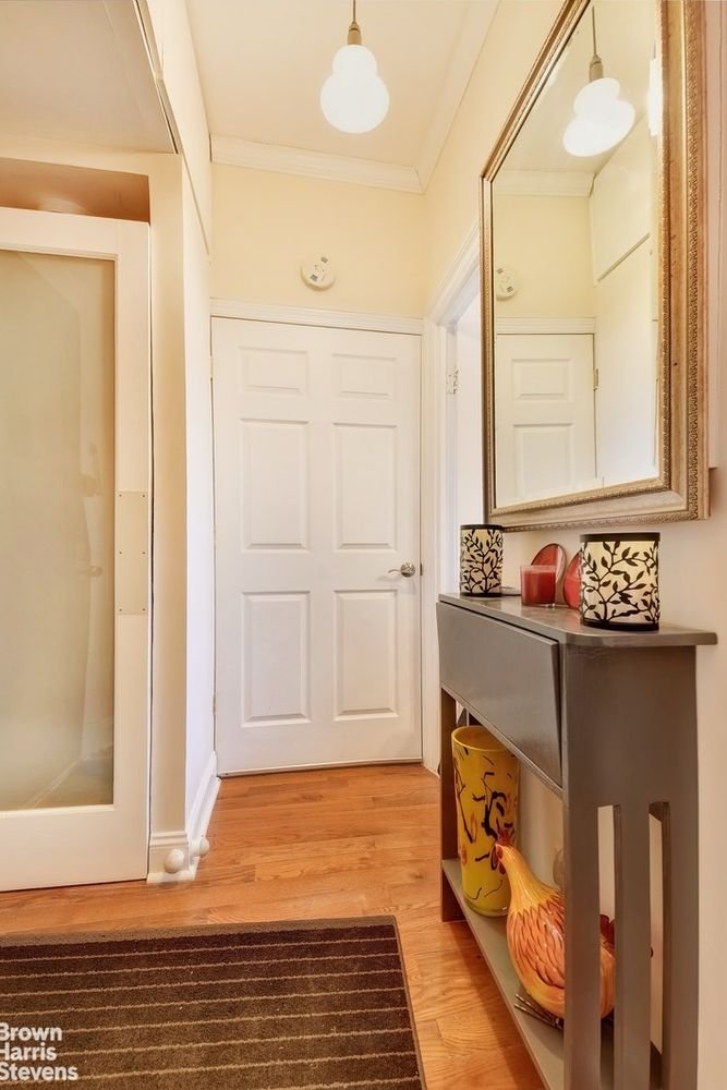 O apartamento 6E fica no último andar, virado a norte, com excelente luminosidade e vista para a vizinhança e skyline. Totalmente e lindamente renovado, é um espaço muito confortável e habitável, com uma cozinha moderna com eletrodomésticos novos e excelente espaço de armários, aberta para a zona de jantar e sala de estar. O elegante banheiro de mármore e janelas fica fora do corredor central, levando ao grande quarto.
