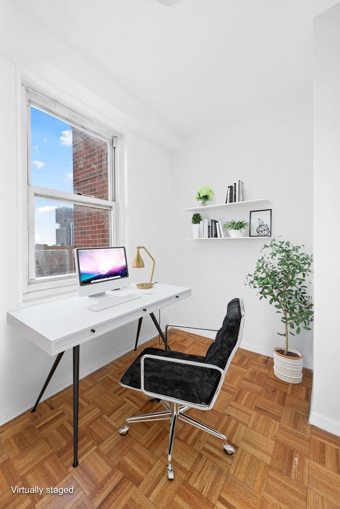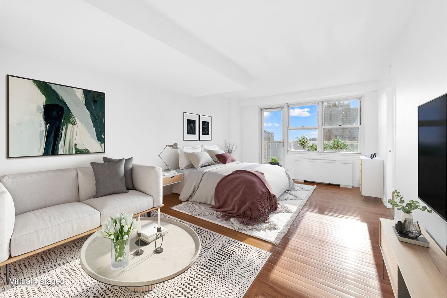 Welcome to this High Floor Alcove Studio, already converted to a one bedroom with your very own HUGE BALCONY in an ideal Upper East Side location. Perfect opportunity to create your dream home with wide open eastern city views and a sliver of river to boot. The sleeping alcove has already been converted to a bedroom and can also be used as a home office. This home has an abundance of closet space, plank wood floors and a 20’+ private Balcony with no balcony above you. Private outdoor space has never been more important.