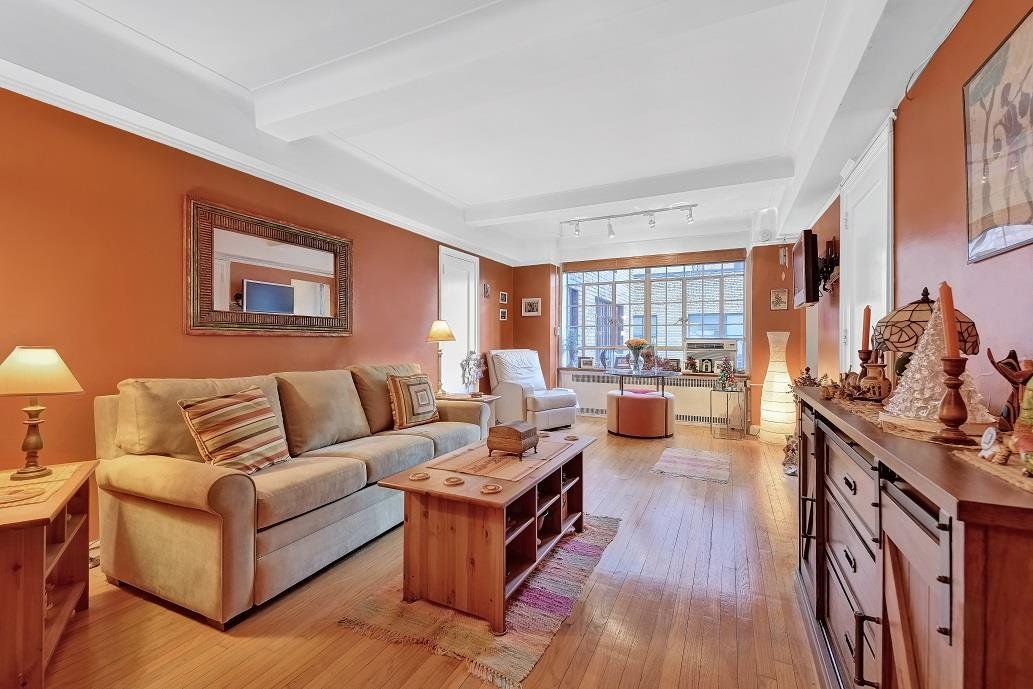 Você também vai desfrutar das belas janelas tipo casement, do piso original de carvalho e dos tetos com vigas aparentes — características pré-guerra marcantes deste incrível edifício art déco.
