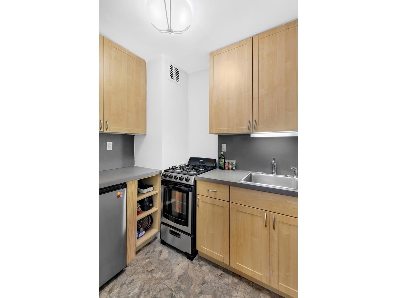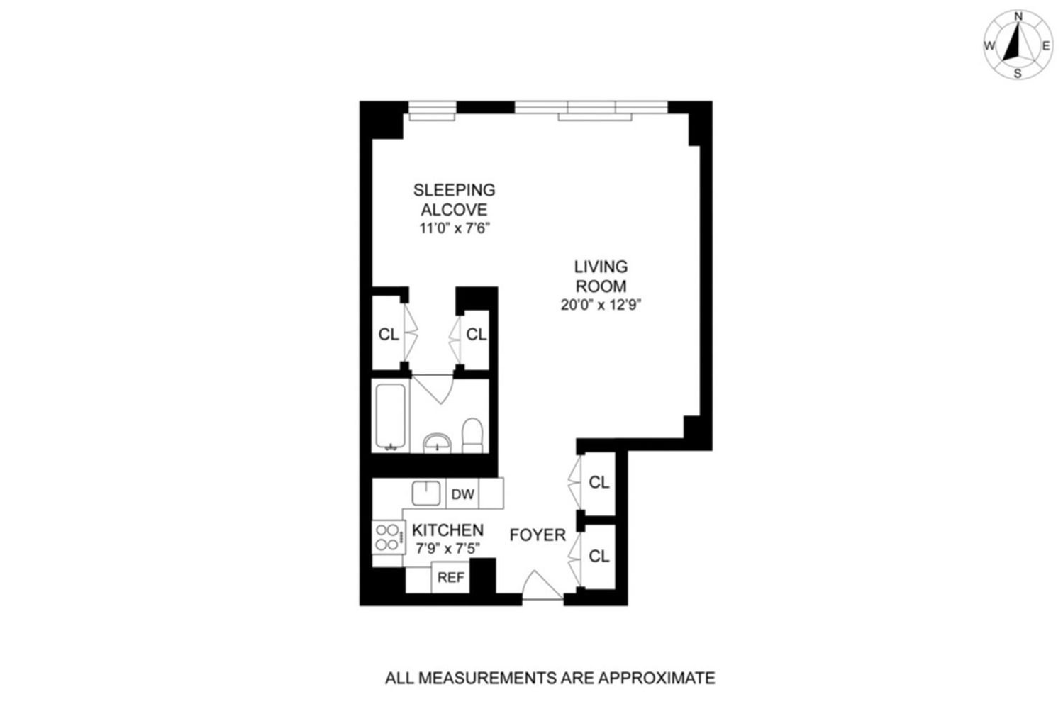 Aproveite vistas abertas da cidade pelas janelas voltadas para o leste neste studio com alcova cheio de luz natural.