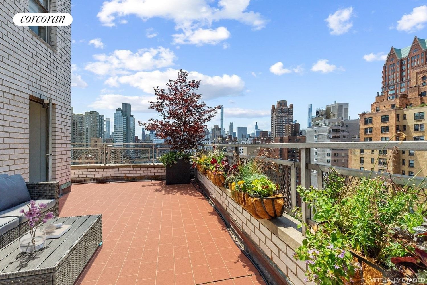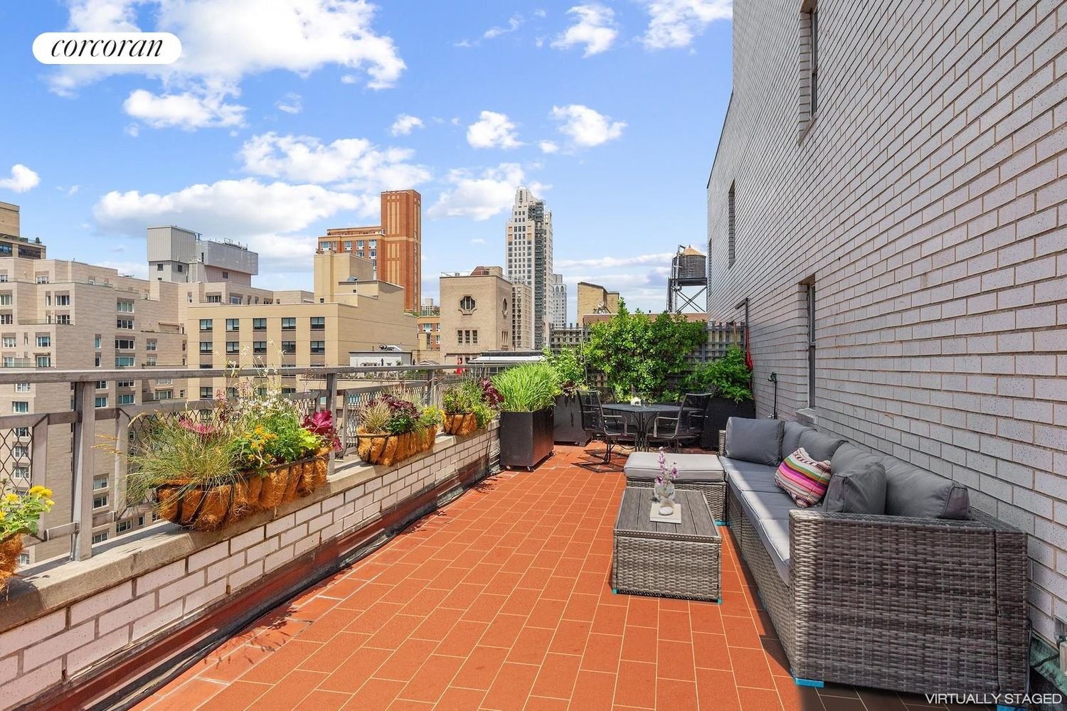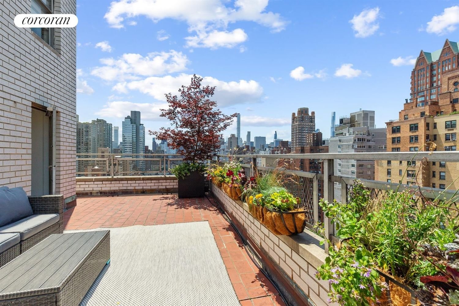 Conheça este enorme terraço de aproximadamente 435 sqft, com paisagismo, ideal para receber convidados, e vistas hipnotizantes do skyline ao sul e oeste.