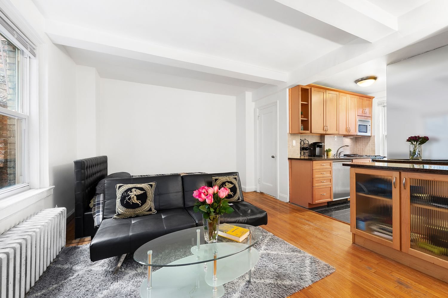 Os pisos de madeira são originais e os tetos com vigas expostas têm 2,7 metros de altura. O prédio do porteiro pré-guerra fica em uma rua arborizada e tem uma entrada coberta. Pegue o elevador até o andar da cobertura para ter acesso ao terraço plantado com excelentes vistas.