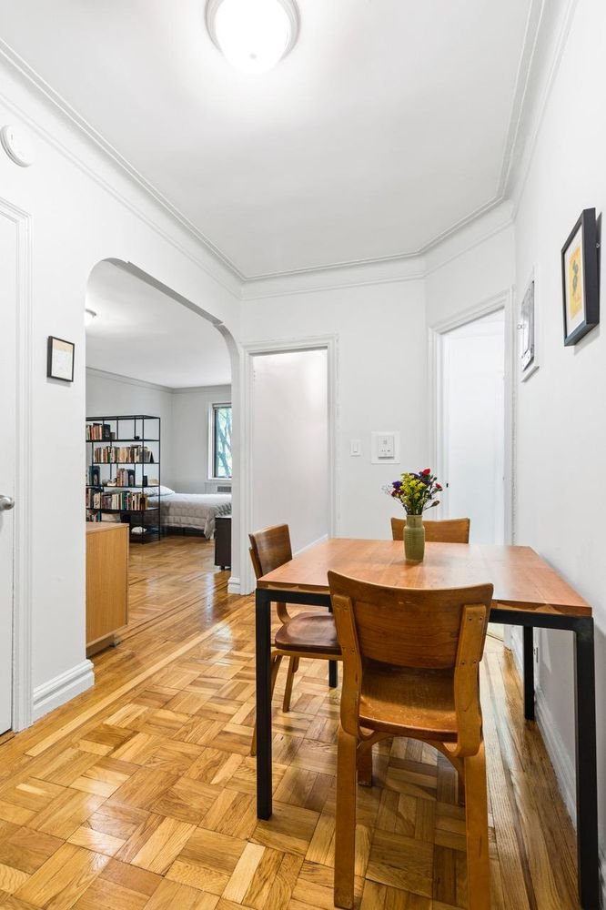 Este studio Inwood de proporções generosas, situado entre os parques Isham e Inwood Hill, pode ser o espaço mais agradável do bairro. Esta jóia do período Deco foi recentemente renovada, com especial atenção aos detalhes específicos do período, incluindo estantes embutidas e um encantador arco que liga o espaço de entrada de grandes dimensões à área de estar principal. Este apartamento está pronto para morar.