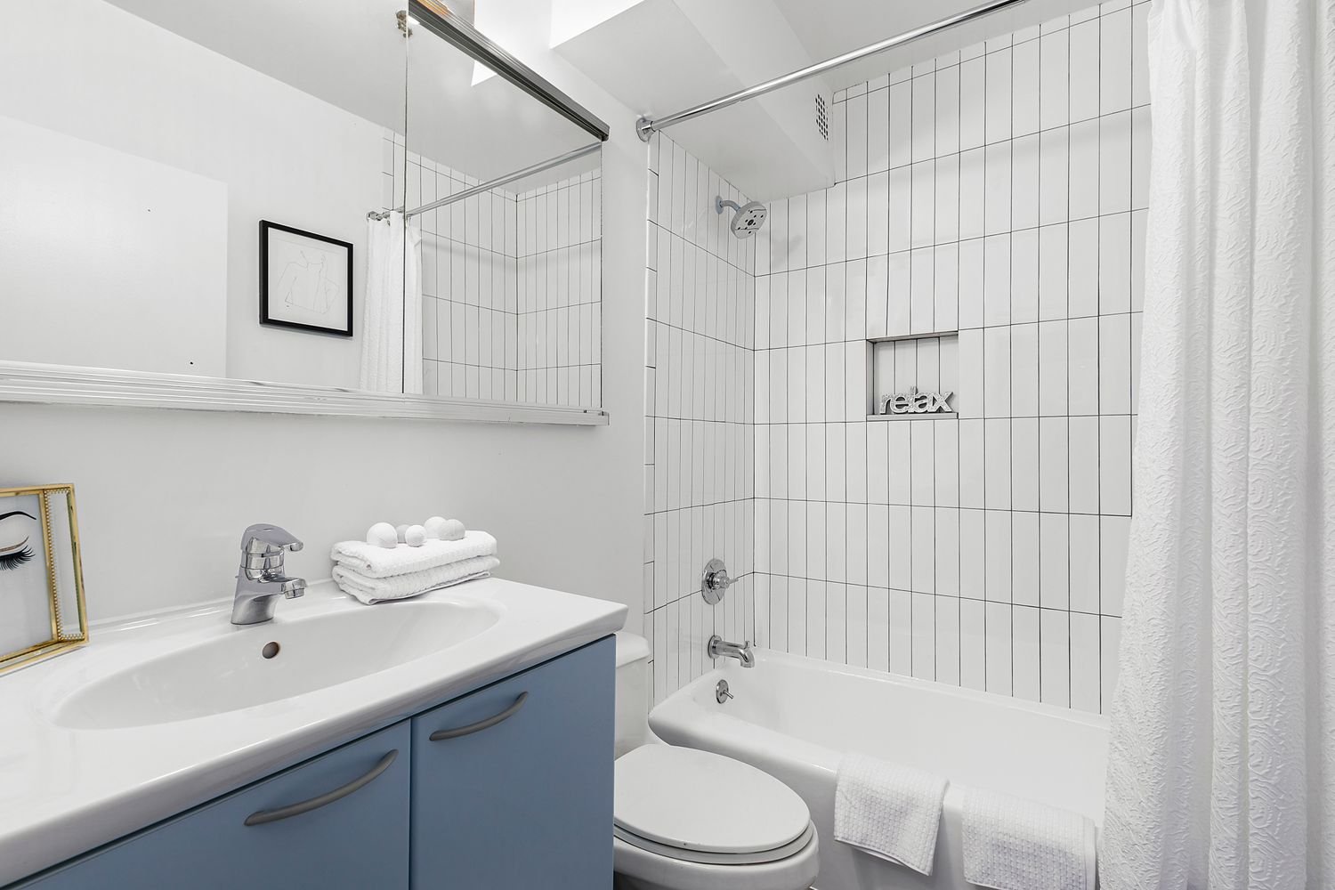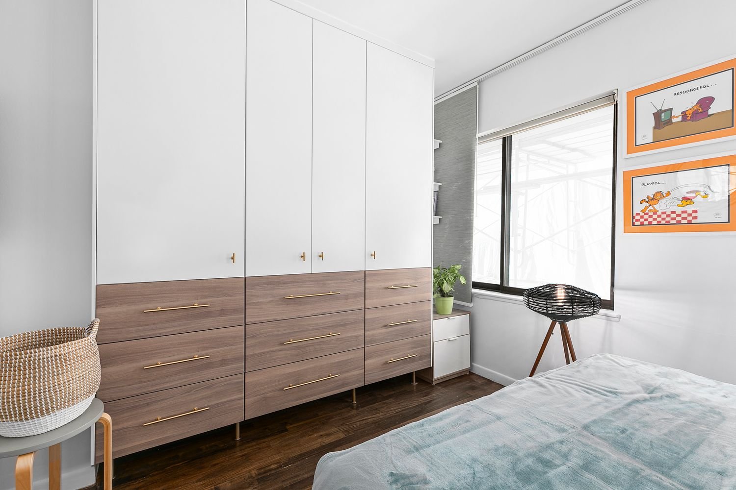 O banheiro também foi recentemente renovado, com novos revestimentos, metais Grohe e banheira restaurada. Para otimizar armazenamento, o imóvel possui armários e marcenaria personalizada na área principal (estar/dormir), com iluminação interna em gavetas, muitas prateleiras e espaço para roupas.