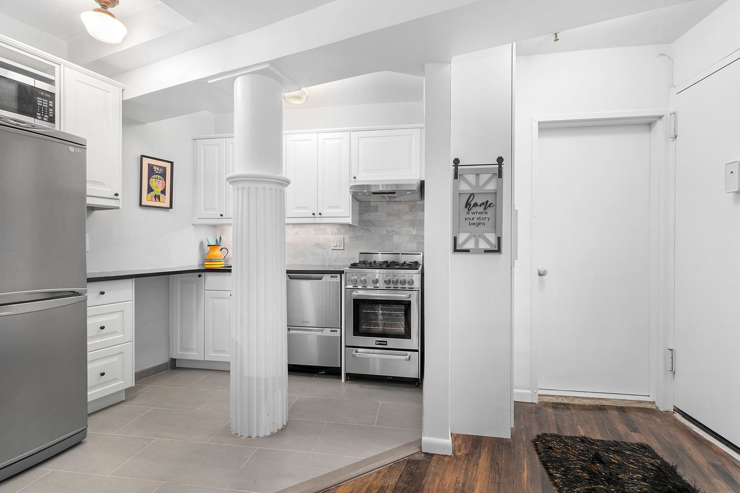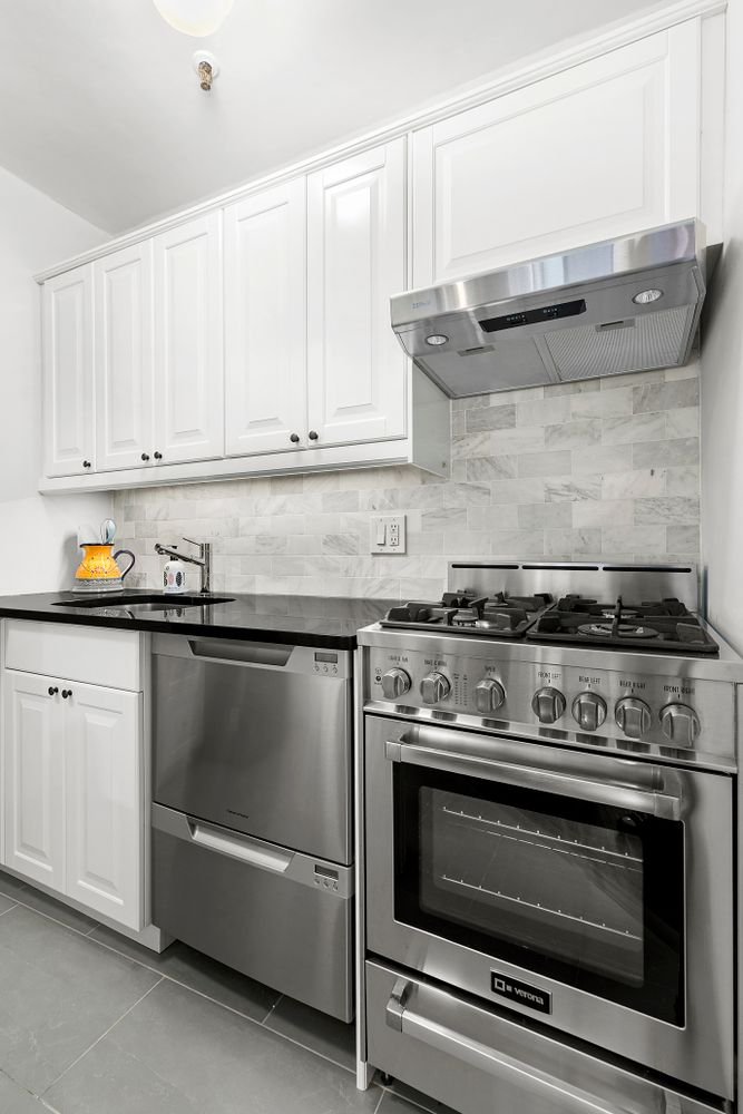 Este imóvel conta com cozinha recém-remodelada com eletrodomésticos em aço inox, incluindo forno Verona, lava-louças Fisher & Paykel e geladeira LG. Com bancadas em granito preto e backsplash em azulejo cinza sob medida, a cozinha é acolhedora e, por ser em conceito aberto, excelente para receber.