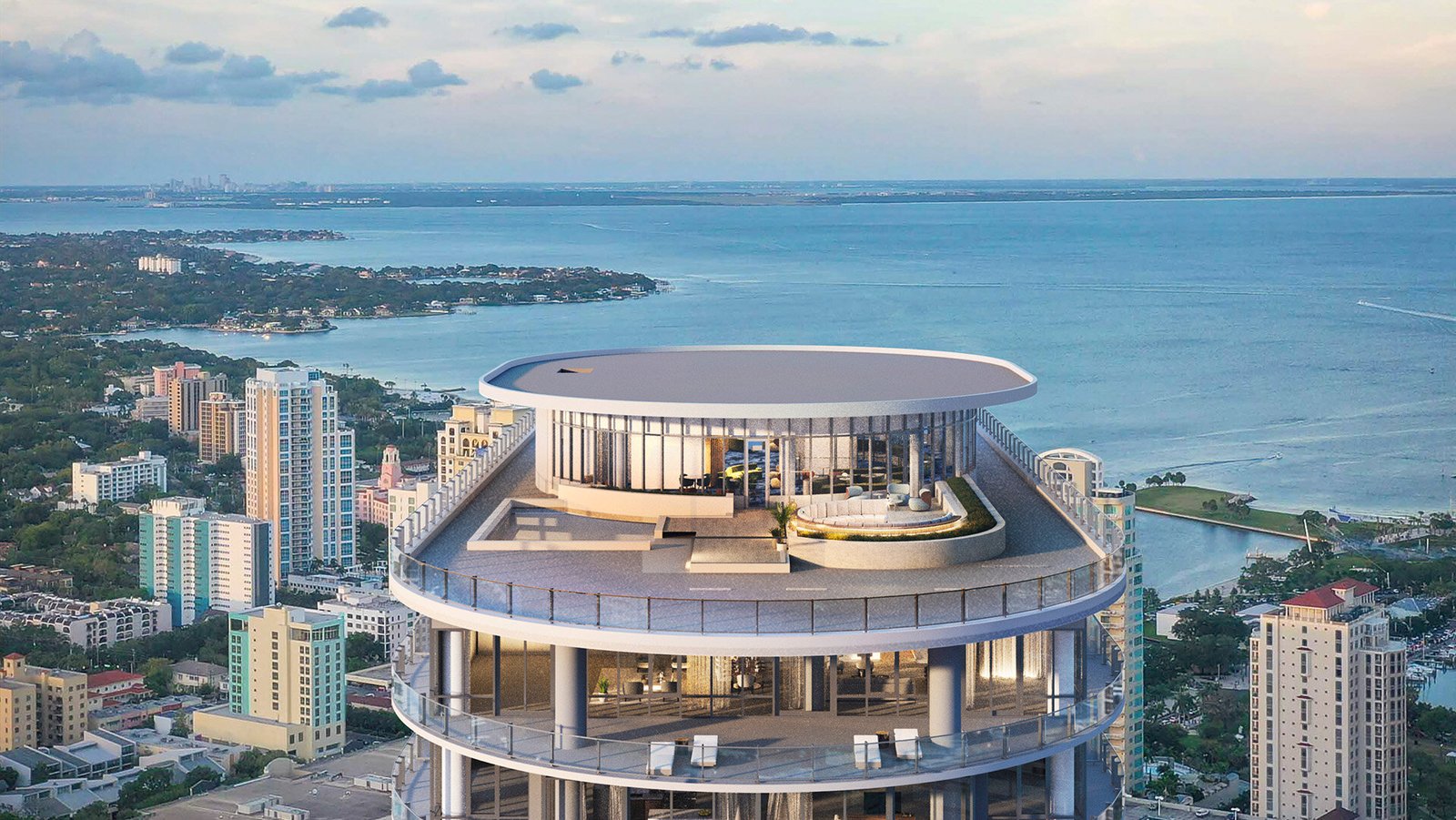 Localização central no coração de St. Petersburg. Elevando-se a mais de 157 metros no ar e previsto para ser um dos edifícios residenciais mais altos da costa oeste da Flórida, com mais de 1200 metros quadrados de instalações residenciais privadas internas e 2100 metros quadrados ao ar livre.