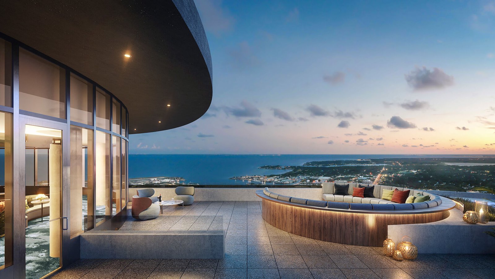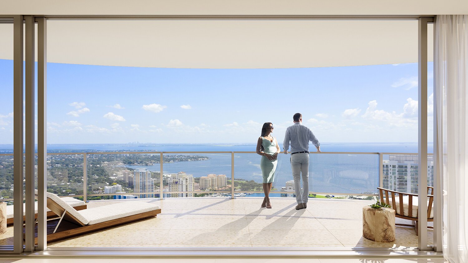 As plantas baixas modernas e de conceito aberto destacam os interiores espaçosos e as vistas panorâmicas da Baía de Tampa ao Golfo do México.