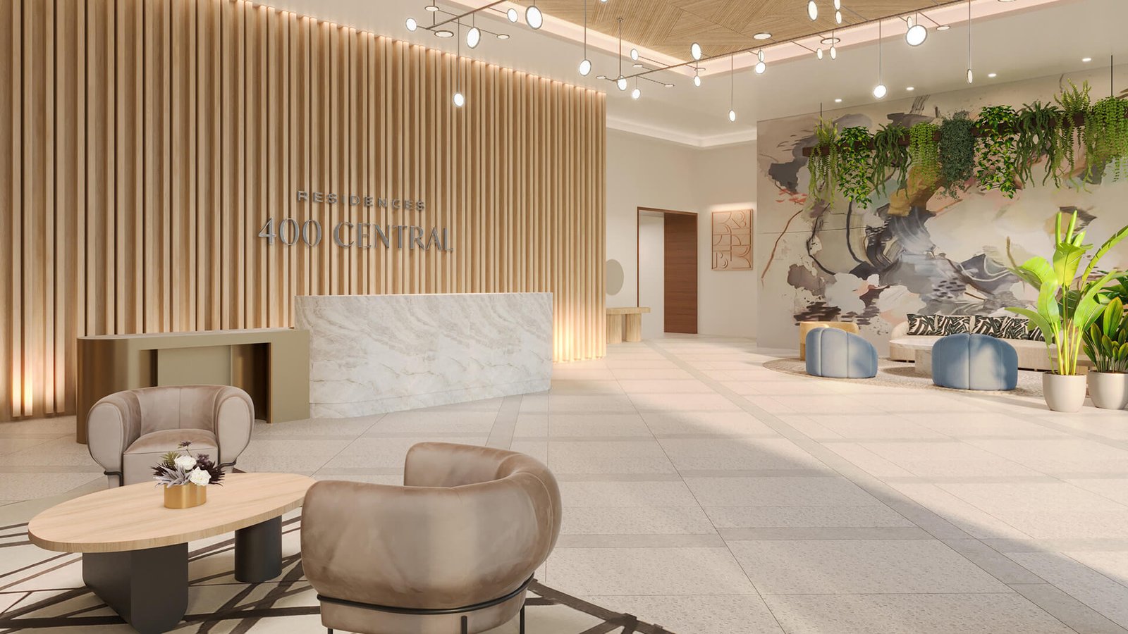 O Residences 400 Central oferece vistas deslumbrantes, design elegante e um conjunto completo de comodidades para o proprietário.